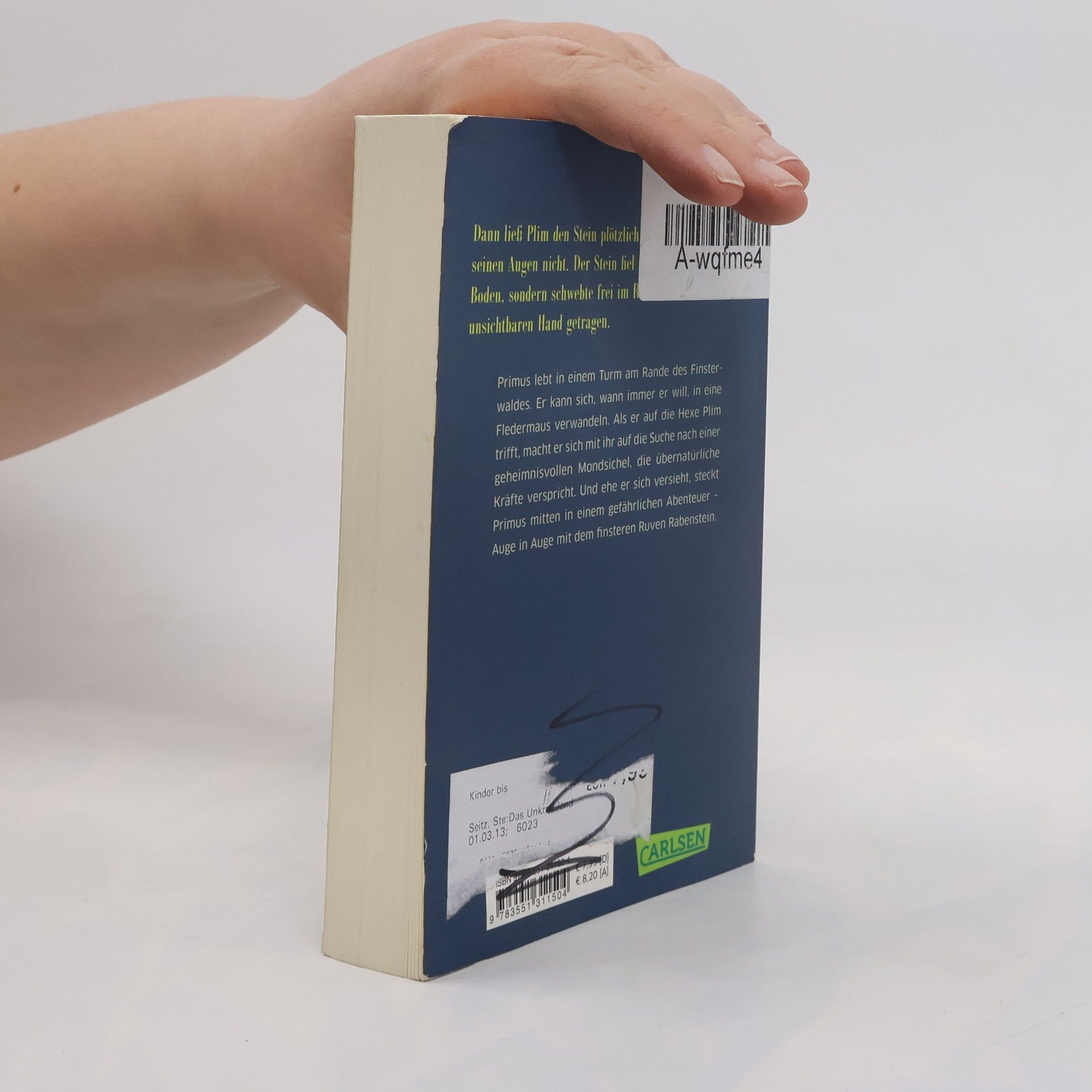 Primus lebt in einem Turm am Ende des Finsterwaldes. Er kann sich, wann immer er will, in eine Fledermaus verwandeln und fliegt dann gerne rüber nach Klettenheim, um in der Bäckerei Kuchen zu stibitzen. Bei einem seiner Ausflüge trifft Primus auf die Hexe Plim. Mit ihr zusammen macht er sich auf die Suche nach einer geheimnisvollen Mondsichel. Und ehe er sich versieht, steckt Primus mitten in einem gefährlichen Abenteuer - Auge in Auge mit dem finsteren Ruven Rabenstein.