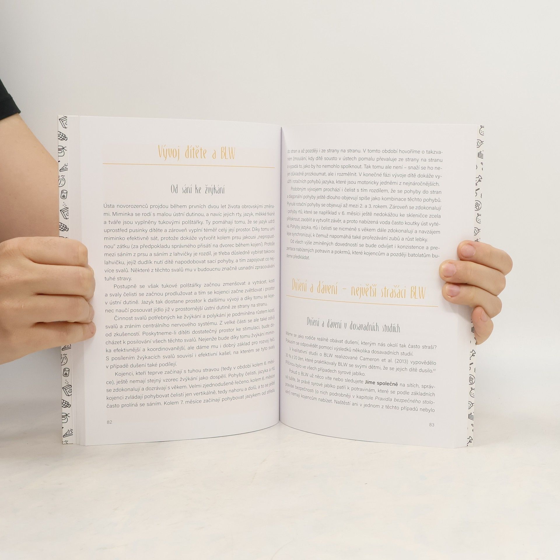 Baby-led weaning (BLW) je světově rozšířeným způsobem zavádění příkrmů do jídelníčku zdravých kojenců od zhruba šesti měsíců věku. Principem celého konceptu je respektující přístup při zavádění prvního nemléčného pokrmu do stravy kojenců a vytváření jídelních zvyklostí nenásilným způsobem, bez nucení ze strany pečujících osob. Důraz je kladen na společné stolování v rámci pestrého a vyváženého jídelníčku celé rodiny. Zásadní úlohu při zavádění příkrmů metodou BLW hraje bezpečnost jídla předkládaného dětem. Musí odpovídat schopnostem a dovednostem v určitém období jejich vývojové zralosti.Součástí knihy jsou recepty na domácí jídla středomořské kuchyně sestavené tak, aby je mohly jíst děti spolu s rodiči už v kojeneckém věku, kdy se metoda BLW v praxi uplatňuje nejvíce.Kniha přináší více pohledů na přínosy BLW. Shrnuje nejpodstatnější informace, které jsou ve spojitosti s touto metodou v odborné literatuře dostupné, zároveň uvádí příklady z praxe a odpovídá na dotazy, které pečující osoby v této oblasti trápí. Pro srozumitelnost a přehlednost je doplněna o grafy, tabulky a fotografie.