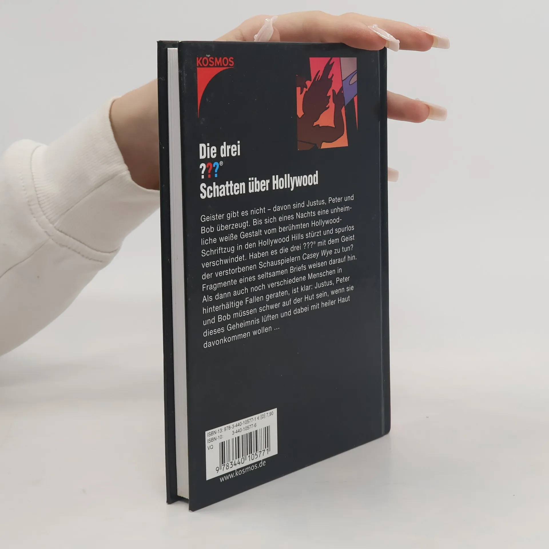 Geister gibt es nicht – davon sind Justus, Peter und Bob überzeugt. Bis eines Nachts eine unheimliche weiße Gestalt vom berühmten Hollywood-Schriftzug in den Hollywood Hills stürzt und spurlos verschwindet. Haben es die drei ??? mit dem Geist der verstorbenen Schauspielern Casey Wye zu tun? Fragmente eines seltsamen Briefs weisen darauf hin. Als dann auch noch Menschen in hinterhältige Fallen geraten, ist klar: Justus, Peter und Bob müssen schwer auf der Hut sein, wenn sie das Geheimnis um den Geist lüften und dabei mit heiler Haut davon kommen wollen.