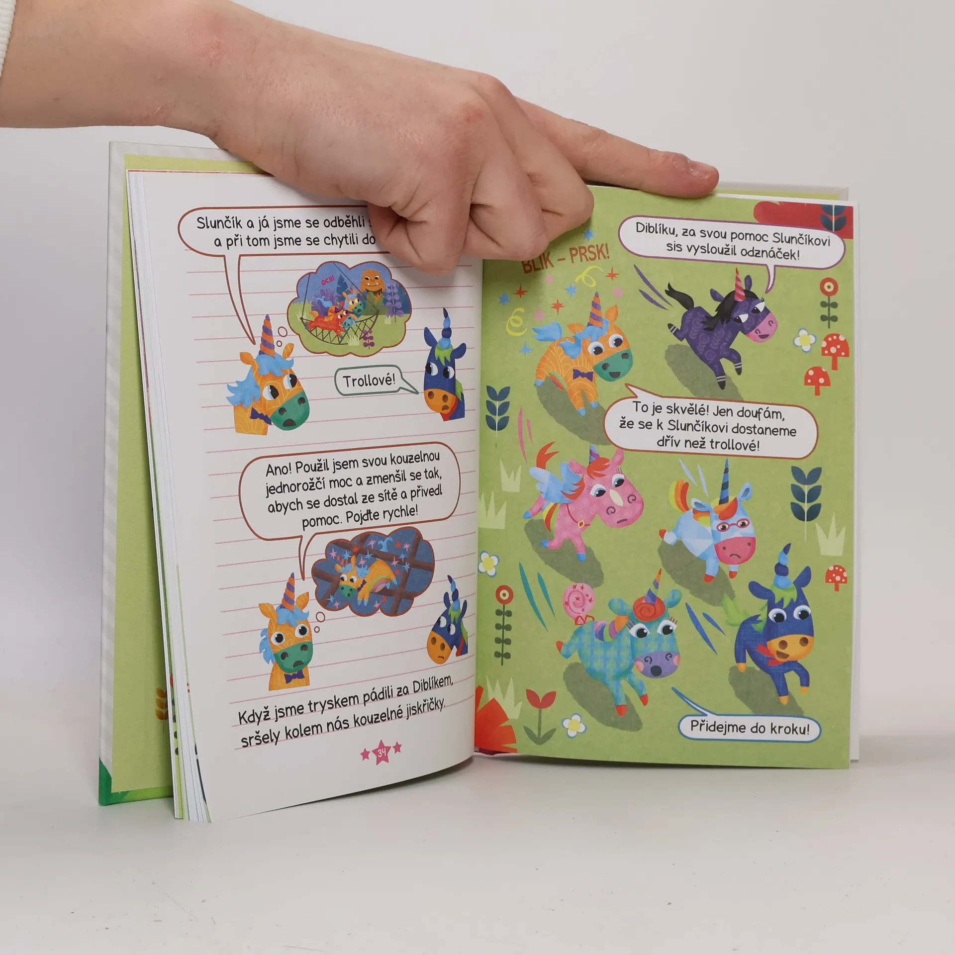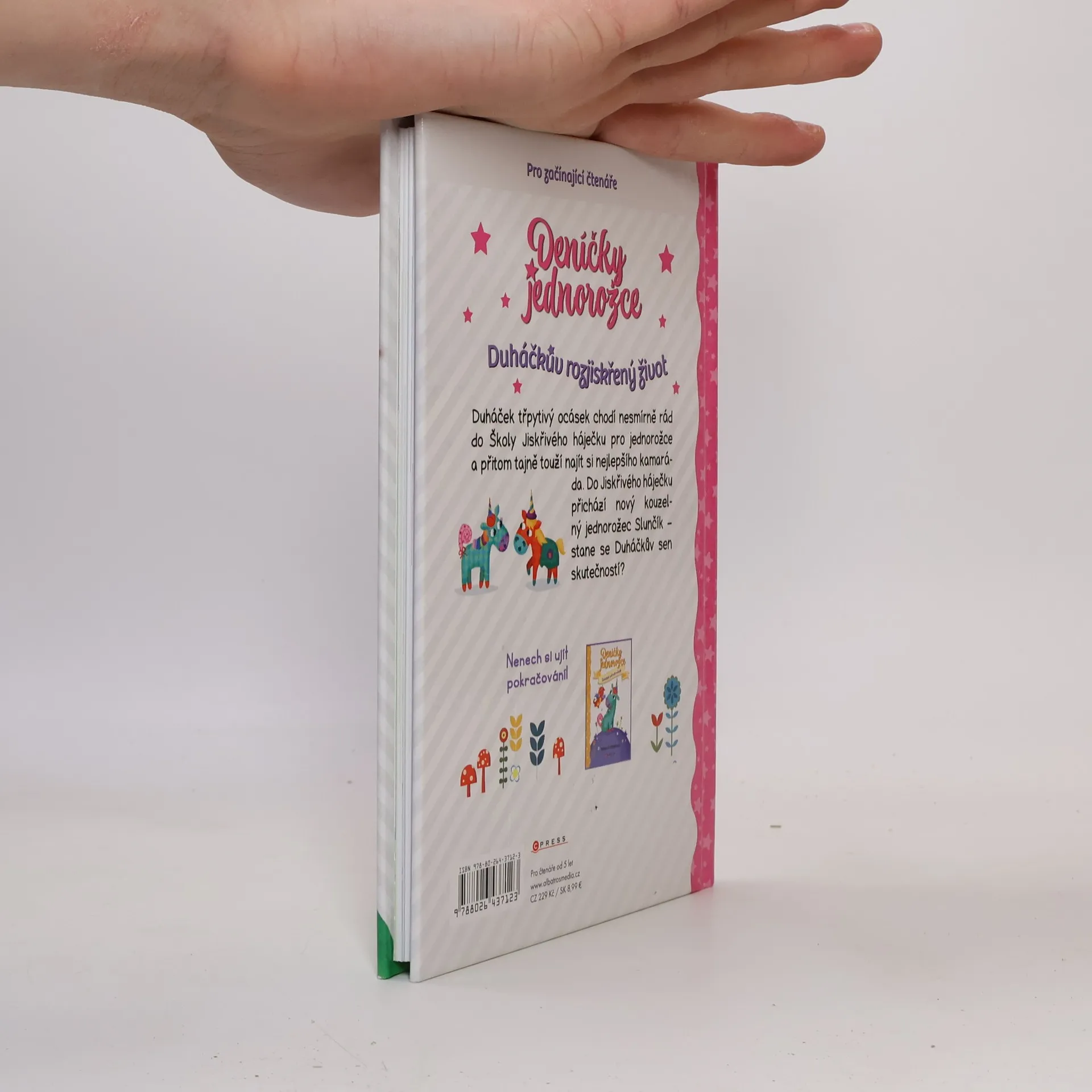 Duháček třpytivý ocásek chodí nesmírně rád do Školy Jiskřivého háječku pro jednorožce a přitom tajně touží najít si nejlepšího kamaráda. Do Jiskřivého háječku přichází nový kouzelný jednorožec Slunčík stane se Duháčkův sen skutečností?