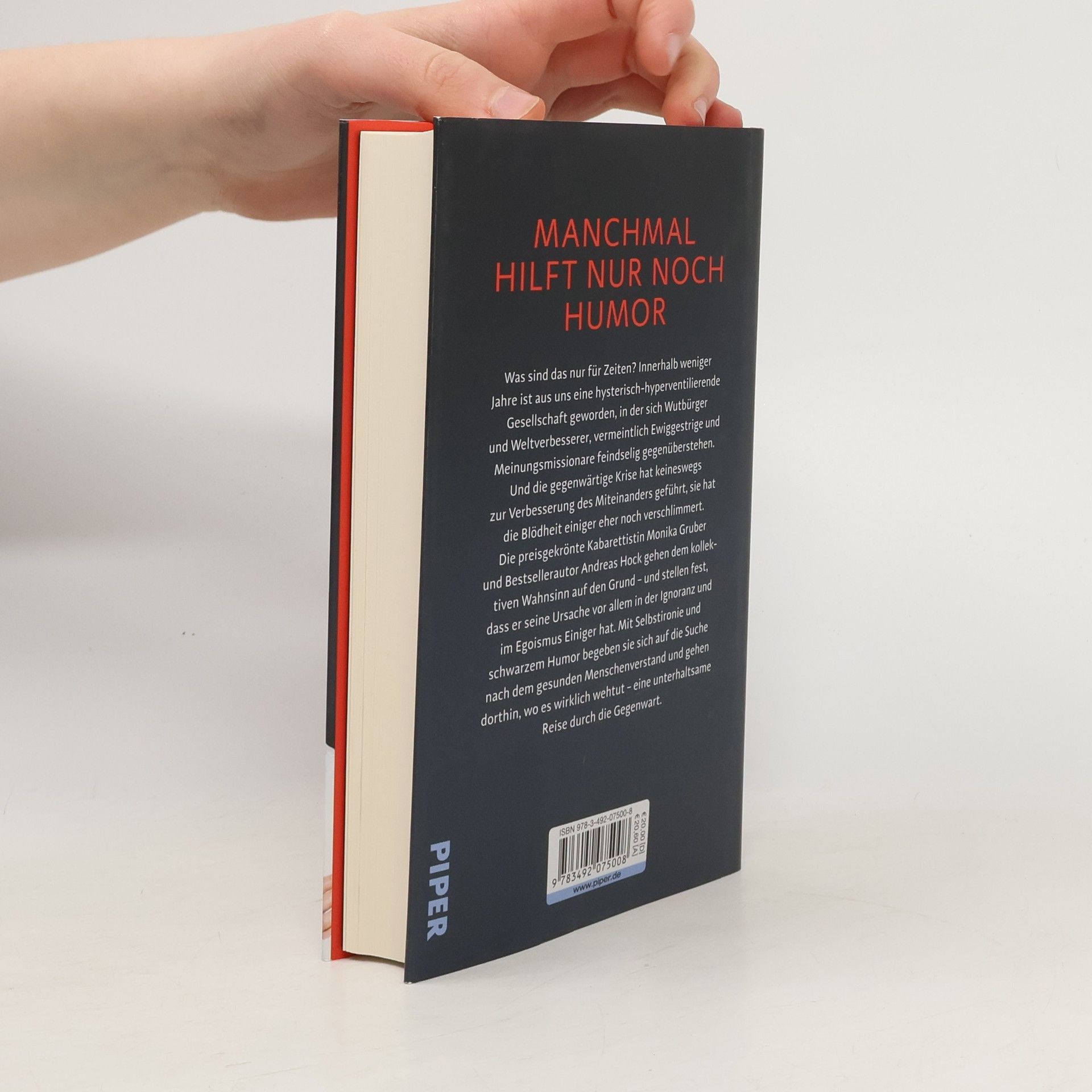Was sind das nur für Zeiten? Innerhalb weniger Jahre ist aus uns eine hysterisch-hyperventilierende Gesellschaft geworden, in der sich Wutbürger und Weltverbesserer, vermeintlich Ewiggestrige und Meinungsmissionare feindselig gegenüberstehen. Und die gegenwärtige Krise hat keineswegs zur Verbesserung des Miteinanders geführt, sie hat die Blödheit einiger eher noch verschlimmert. Die preisgekrönte Kabarettistin Monika Gruber und Bestsellerautor Andreas Hock gehen dem kollektiven Wahnsinn auf den Grund – und stellen fest, dass er seine Ursache vor allem in der Ignoranz und im Egoismus einiger Weniger hat. Mit Selbstironie und schwarzem Humor begeben sie sich auf die Suche nach dem gesunden Menschenverstand und gehen dorthin, wo es wirklich wehtut – eine unterhaltsame Reise durch die Gegenwart, die beweist: Lachen hilft!
