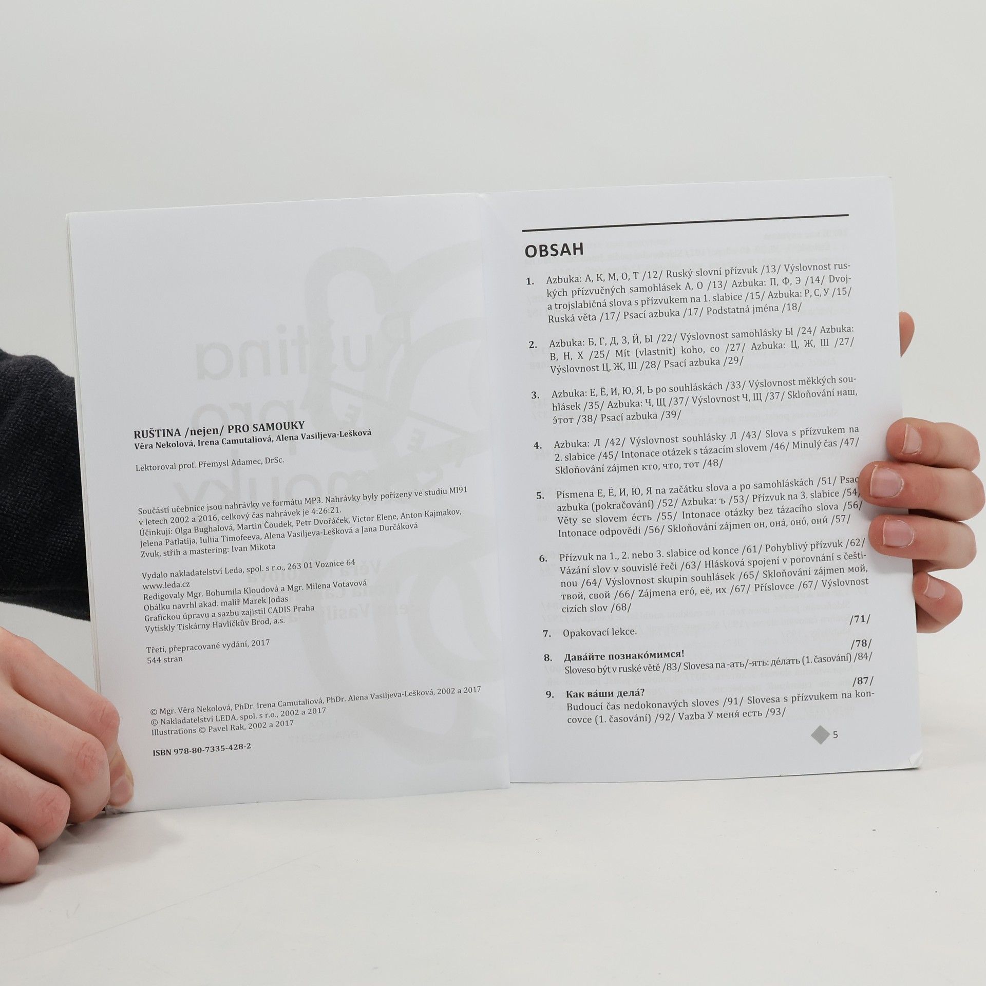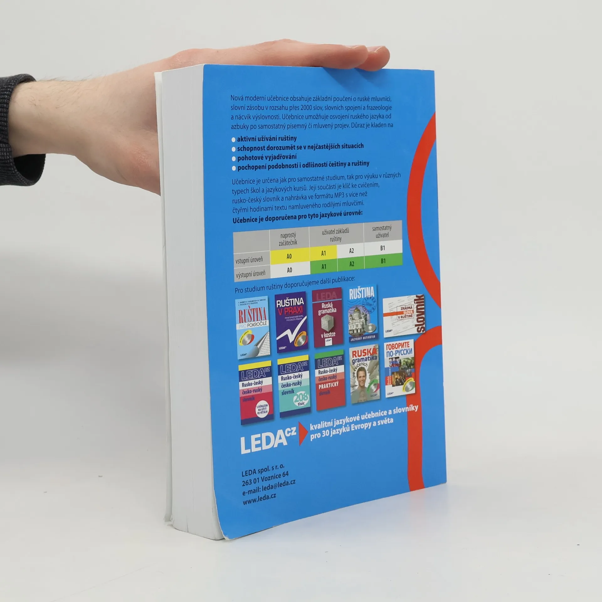 Nová, moderní učebnice přináší základní znalosti ruské mluvnice, slovní zásoby (v rozsahu přes 2000 slov a slovních spojení), frazeologie a výslovnosti. Učebnice umožňuje osvojení ruského jazyka od azbuky po samostatný písemný či mluvený projev. Důraz je kladen na aktivní užívání ruštiny, pochopení podobností i odlišnosti češtiny a ruštiny, schopnost dorozumět se v nejčastějších situacích a pohotové vyjadřování. Výběr témat z nejrůznějších oblastí běžného života vede k porozumění mluveného i čteného jazykového projevu, k nácviku vlastní aktivní konverzace i písemného vyjadřování. Součástí učebnice je brožura obsahující klíč ke cvičením a rusko-český slovník a soubory ve formátu mp3 s více než čtyřmi hodinami nahrávek úvodních textů a většiny cvičení. Nahrávka je přístupná ke stažení na této stránce. Učebnice je určena jak pro samostatné studium, tak pro výuku v různých typech škol (základních, středních i vysokých) a v jazykových kursech. Cílem učebnice je zvládnutí ruštiny na středně pokročilé úrovni (stupeň B2 Evropského jazykového rámce).