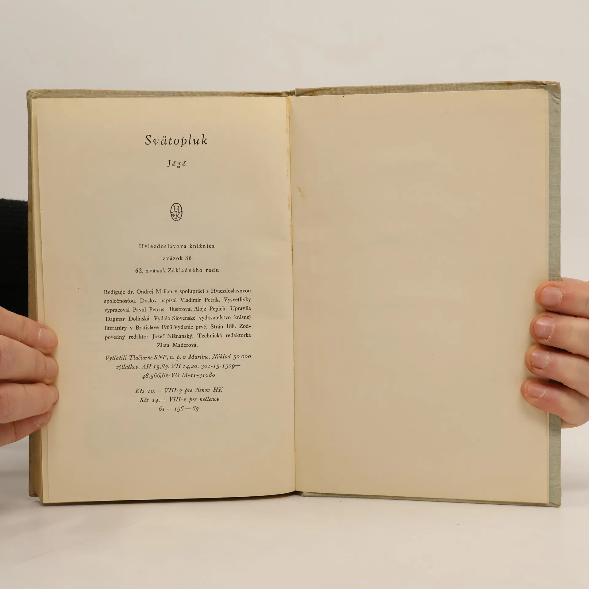Historický román Svätopluk – predstavy o vladárovi Veľkomoravskej ríše Svätoplukovi... "Edícia Tri knihy súdobej kultúry. Vydalo vydavateľstvo Družstevnej práce v Prahe, zap. spoločenstvo s r. o., k výstave súdobej kultúry v Brne a k oslave desiateho výročia Československej republiky. MCMXXVIII. Deväťdesiata publikácia Družstevnej práce."