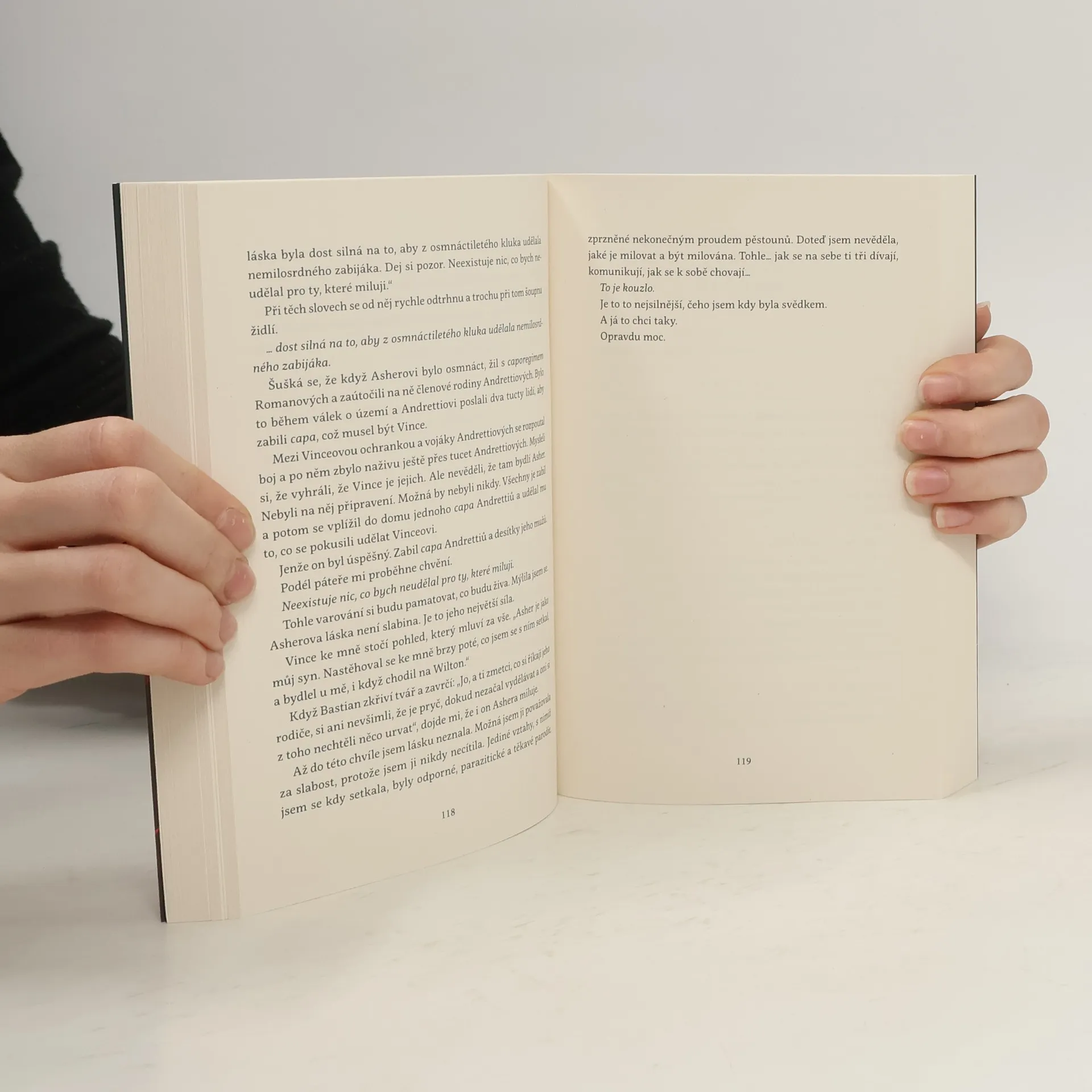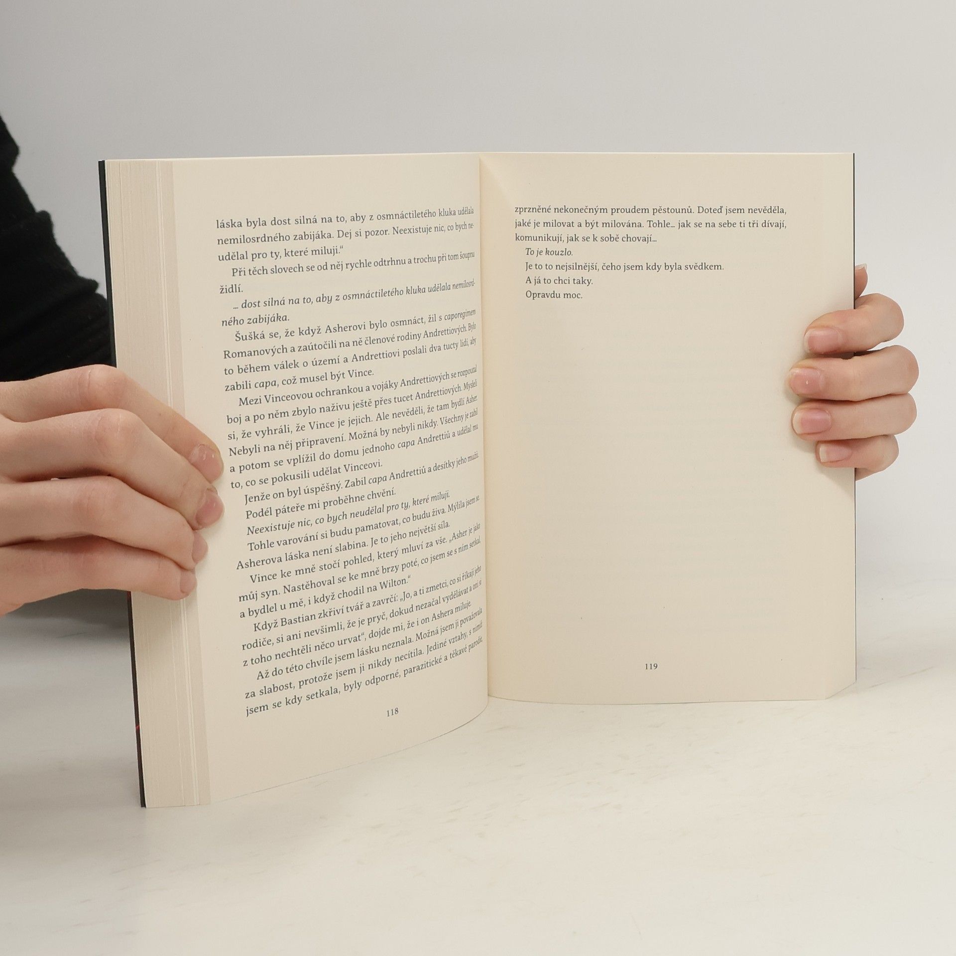 Měl mě zabít.Udělala jsem nemyslitelné. Zavolala jsem na něj a jeho rodinu policii, ale on mě nečekaně nechal naživu.Stali se z nás nejdřív přátelé a potom… i něco víc…Všechno to začalo mým močovým měchýřem. Neměla jsem v plánu stát se na chodbě toalet svědkem podezřelého obchodu.Policii jsem zavolala bez dlouhého rozmýšlení. To jsem ovšem netušila, komu ten klub patří.Asheru Blackovi.Bývalému zabijáku a mafiánovi. CEO, miliardáři. Tomu nejžhavějšímu kandidátovi na ženění v New Yorku.Když se objeví na vysoké škole, kam chodím, a hledá dívku, která zavolala policii na jeho podnik, vím, že se můžu rozloučit se životem. Jeho nabídka mě však zaskočí – zaplatí za mě školné, najde mi po promoci příjemnou práci a jediné, co pro to musím udělat, je… předstírat, že jsem jeho snoubenkou.