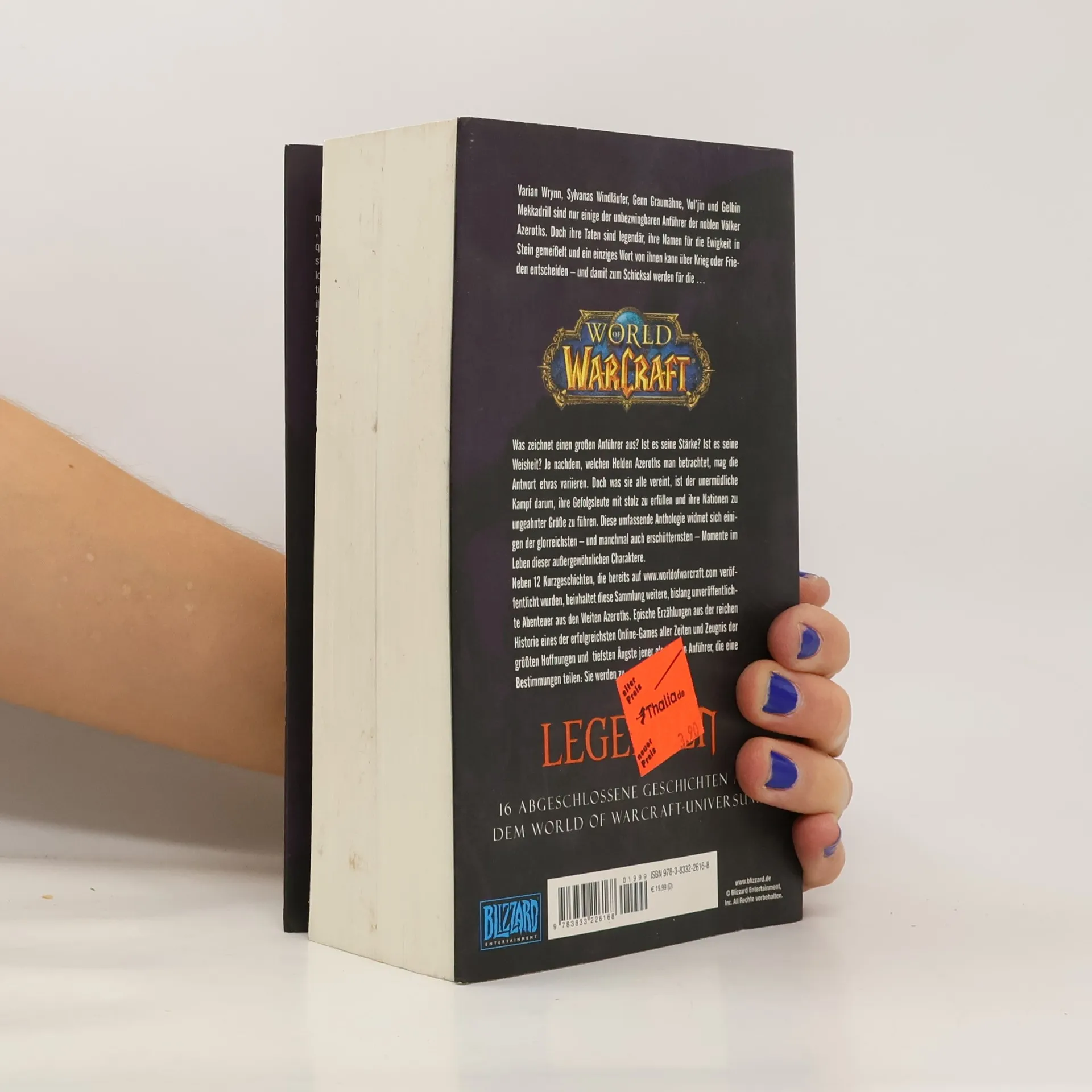 Varian Wrynn, Sylvanas Windläufer, Genn Graumähne, Vol’jin und Gelbin Mekkadrill sind nur einige der unbezwingbaren Anführer der noblen Völker Azeroths. Doch ihre Taten sind legendär, ihre Namen für die Ewigkeit in Stein gemeißelt und ein einziges Wort von ihnen kann über Krieg oder Frieden entscheiden – und damit zum Schicksal werden für die World of WarCraft. Was zeichnet einen großen Anführer aus? Ist es seine Stärke? Ist es seine Weisheit? Je nachdem, welchen Helden Azeroths man betrachtet, mag die Antwort etwas variieren. Doch was sie alle vereint, ist der unermüdliche Kampf darum, ihre Gefolgsleute mit Stolz zu erfüllen und ihre Nationen zu ungeahnter Größe zu führen. Diese umfassende Anthologie widmet sich einigen der glorreichsten – und manchmal auch erschütternsten – Momente im Leben dieser außergewöhnlichen Charaktere. Neben 12 Kurzgeschichten, die bereits auf www.worldofwarcraft.com veröffentlicht wurden, beinhaltet diese Sammlung weitere, bislang unveröffentlichte Abenteuer aus den Weiten Azeroths. Epische Erzählungen aus der reichen Historie eines der erfolgreichsten Online-Games aller Zeiten und Zeugnis der größten Hoffnungen und tiefsten Ängste jener glorreichen Anführer, die eine Bestimmung teilen: Sie werden zu Legenden. 16 abgeschlossene Geschichten aus dem World of WarCraft-Universum.