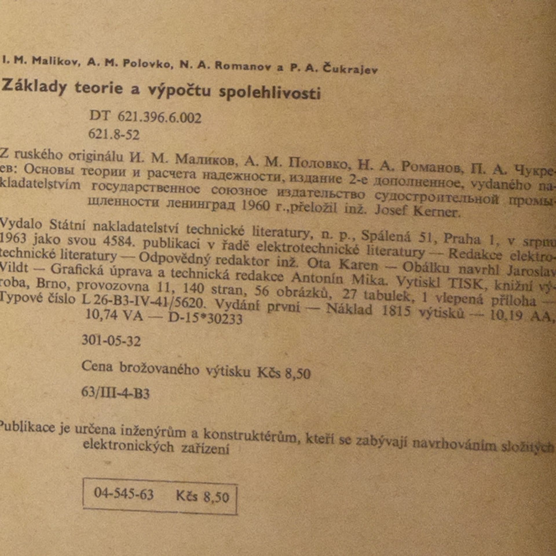 Základy teorie a výpočtu spolehlivosti, I.M. Malikov, A.M. Polovko