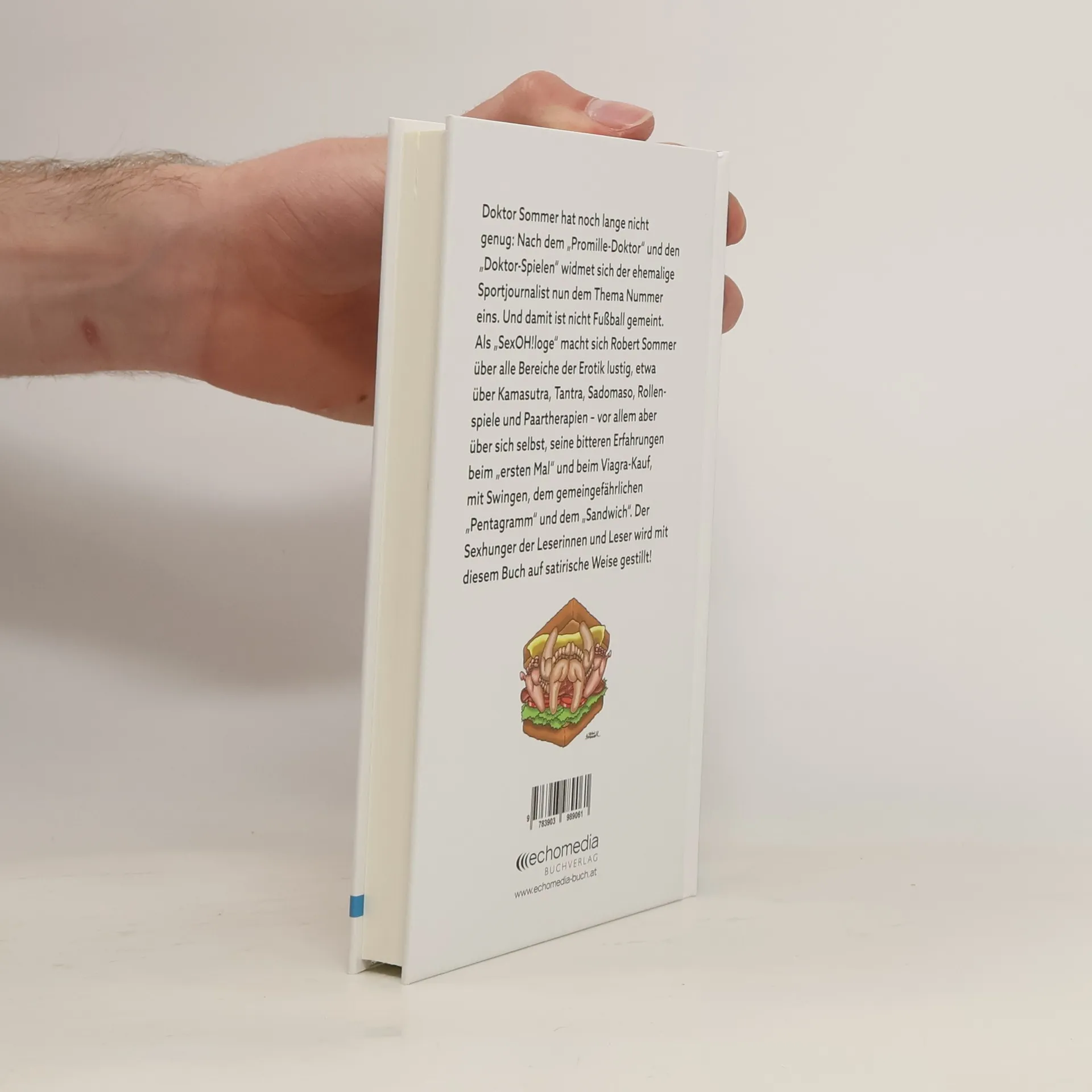 Doktor Sommer hat noch lange nicht genug: Nach dem „Promille-Doktor“ und den „Doktor-Spielen“ widmet sich der ehemalige Sportjournalist nun dem Thema Nummer eins. Und damit ist nicht Fußball gemeint. Als „SexOH! loge“ macht sich Robert Sommer über alle Bereiche der Erotik lustig, etwa über Kamasutra, Tantra, Sadomaso, Rollenspiele und Paartherapien – vor allem aber über sich selbst, seine bitteren Erfahrungen beim „ersten Mal“ und beim Viagra-Kauf, mit Swingen, dem gemeingefährlichen „Pentagramm“ und dem „Sandwich“. Der Sexhunger der Leserinnen und Leser wird mit diesem Buch auf satirische Weise gestillt!