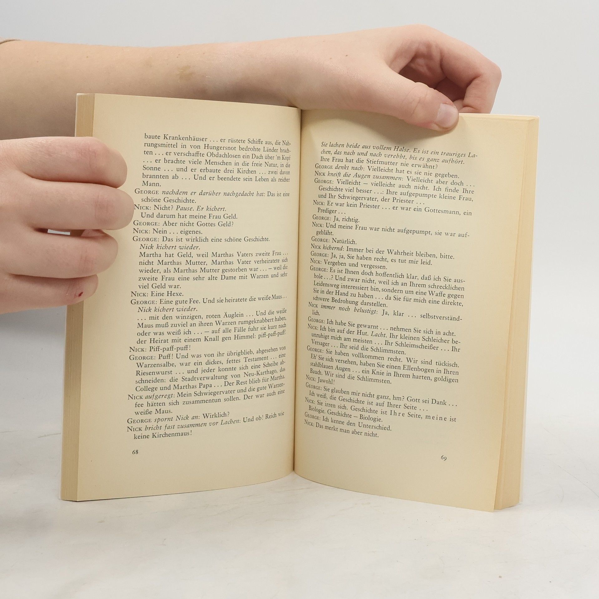 Der Titel klingt heiter und wie eine bloße Variante des Kinderliedes ›Wer hat Angst vor dem bösen Wolf?‹ Aber hinter dieser scheinbaren Harmlosigkeit verbirgt sich das Chaos menschlicher Beziehungen. Schauplatz des Dramas ist eine Wohnung, in der sich zwei Ehepaare nach einer Party treffen. Man vertreibt sich die Zeit mit Gesellschaftsspielen, die zum Anlaß der Selbstentblößung werden. Albee geht es dabei um die Aufdeckung menschlicher Illusionen. Er zeichnet mit ebensoviel Wehmut wie Ironie, zugleich messerscharf und doch mitfühlend das Bild des Menschen, dem offenbar alles zum ›Glücklichsein‹ zur Verfügung steht und der doch nur um so hoffnungsloser allein ist. Carson McCullers schrieb über das von der Kritik als großes leidenschaftliches Theater gefeierte Stück: »Es hat die Leidensgröße eines griechischen Dramas, wildesten Humor und düsteren Glanz.«