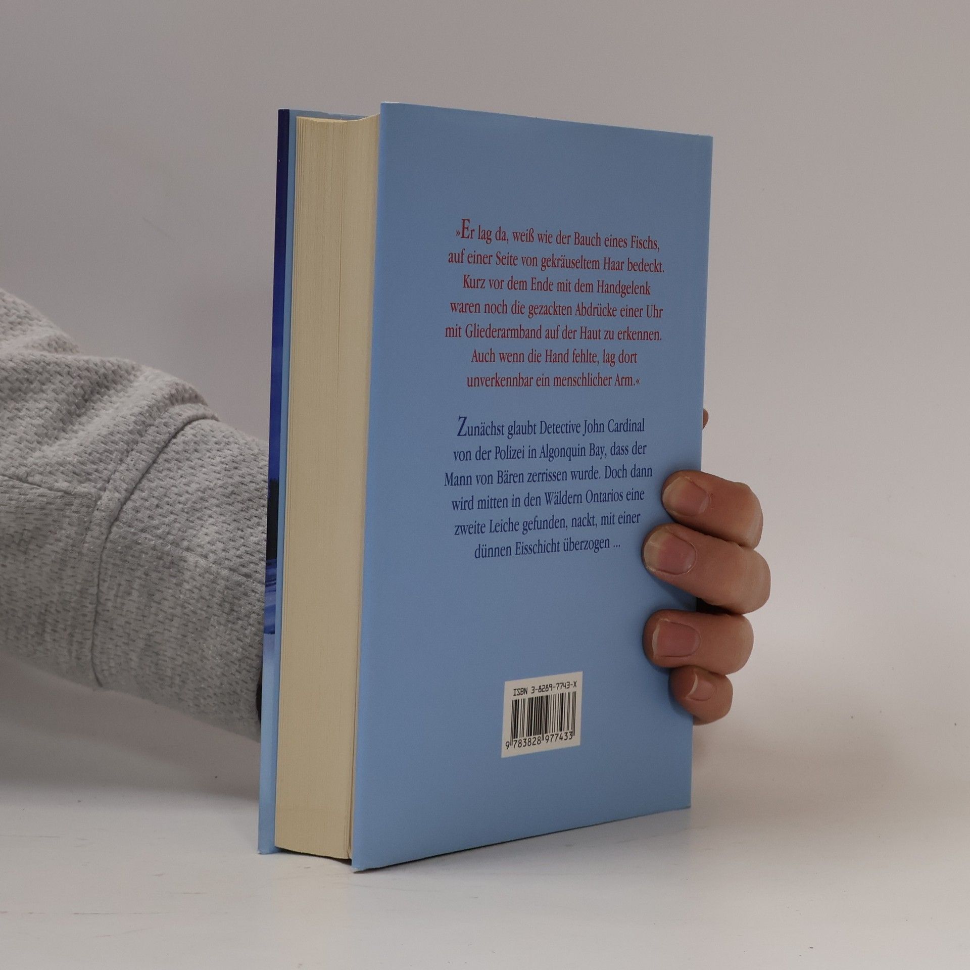 Er lag da, weiß wie der Bauch eines Fischs, auf einer Seite von gekräuseltem Haar bedeckt. Kurz vor dem Ende mit dem Handgelenk waren noch die gezackten Abdrücke einer Uhr mit Gliederarmband auf der Haut zu erkennen. Auch wenn die Hand fehlte, lag dort unverkennbar ein menschlicher Arm .. Zunächst glaubt Detektive John Kardinal von der Polizei in Algonquin Bay, dass der Mann von Bären gerissen wurde. Doch dann wird mitten in den Wäldern Ontarios eine zweite Leiche gefunden, nackt , mit einer dünnen Eisschicht überzogen.