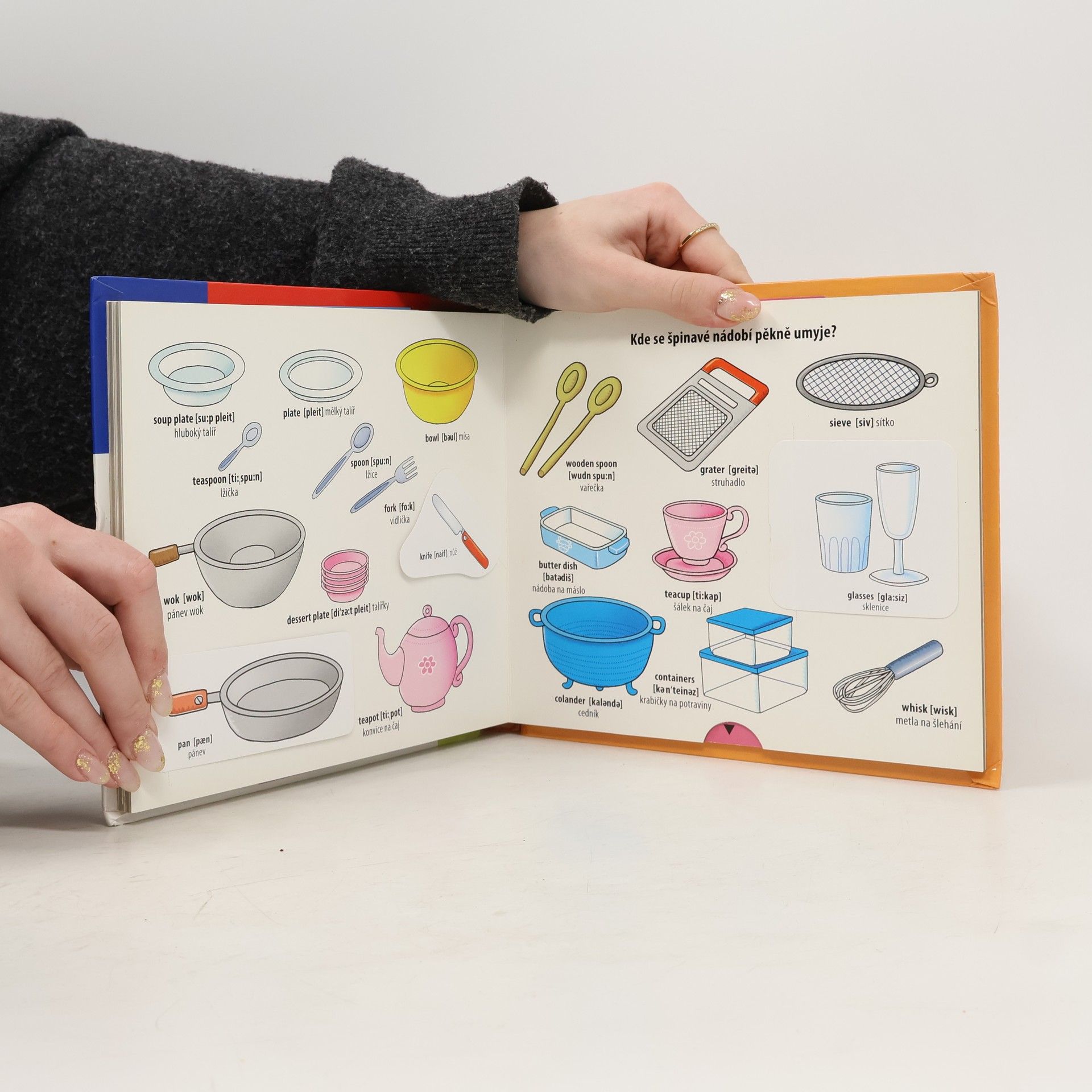 Tento slovníček je plný obrázků, díky nimž si děti obohatí představivost a slovní zásobu. Obrázky jsou jednoduché, snadno přiřaditelné k jednotlivým pojmům. Kniha děti zaujme také díky odkrývacím okénkům.
