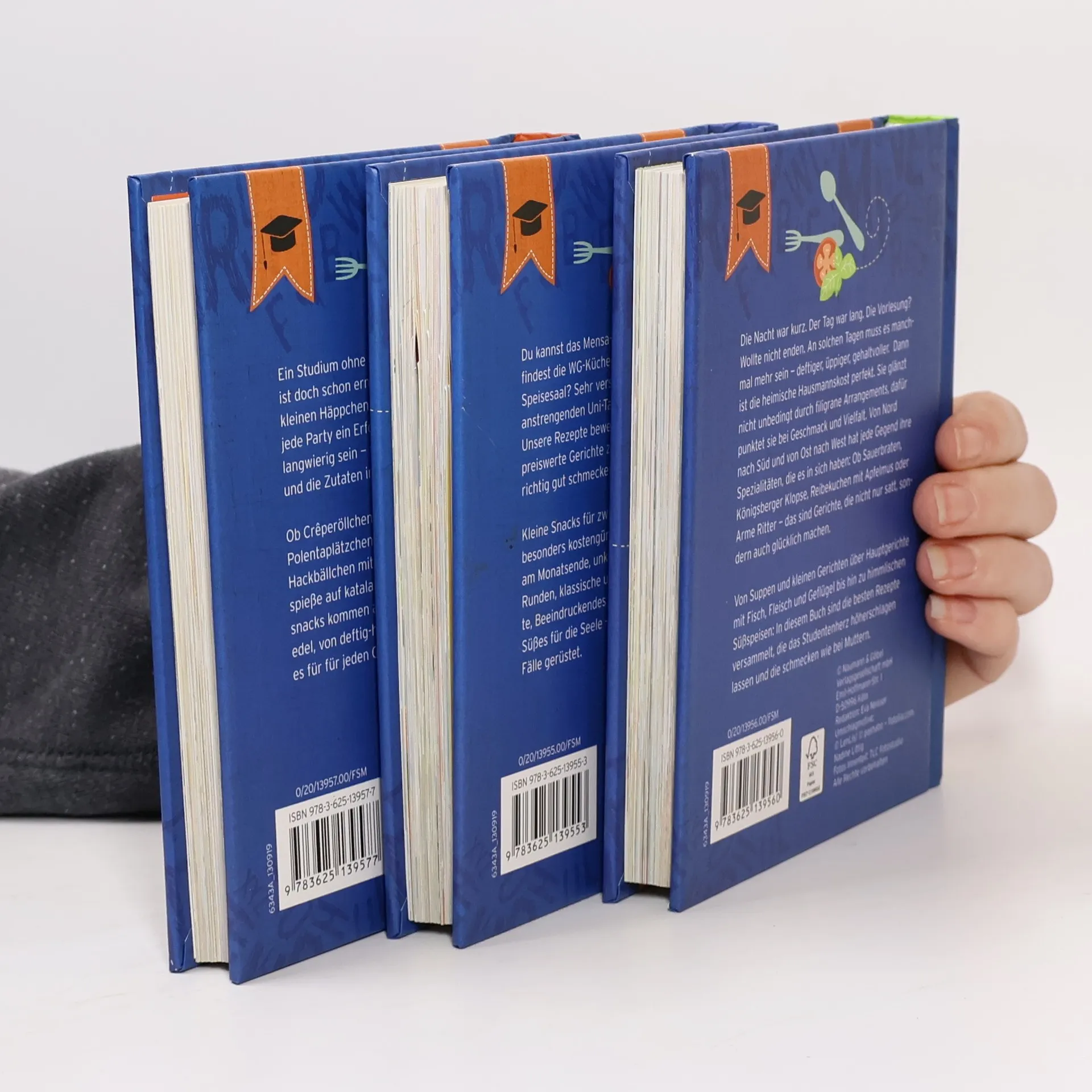 Ein leerer Bauch studiert nicht gern - 3 Kochbücher im liebevoll gestalteten Schmuckschuber - Ein ideales Geschenk für Eltern, Freunde und Verwandte zum Studienstart - Über 270 Klassiker und neue Trendrezepte für alle Gelegenheiten des Studentenlebens – ob für die nächste Party, für den Tag danach, die ganze WG oder zum Monatsende - Jedes Rezept mit brillantem Farbfoto und verständlicher Schritt-für-Schritt-Anleitung - Unschlagbares Preis-Leistungs-Verhältnis Mensa? War gestern! Ob zum Monatsende, zum Eindruckschinden, für die nächste Party, den Tag danach oder die ganze WG: Mit den sorgfältig ausgewählten 270 Rezepten in diesem praktischen Schuber sind Studenten für alle Gelegenheiten gerüstet! Von der deftigen Hausmannskost über die Partyküche bis hin zur einfachen, schmackhaften Studentenküche liefert die Box Rezepte satt, die einen nachmittags über die längste Vorlesung retten, abends für einen anstrengenden Tag belohnen oder einfach die ganze WG bei Laune halten. Dabei sind alle Rezepte brillant bebildert und mit Anleitungen versehen, bei denen auch Anfängern nichts anbrennt. Das ideale Geschenk für Eltern, Freunde und Verwandte zum Studienstart!