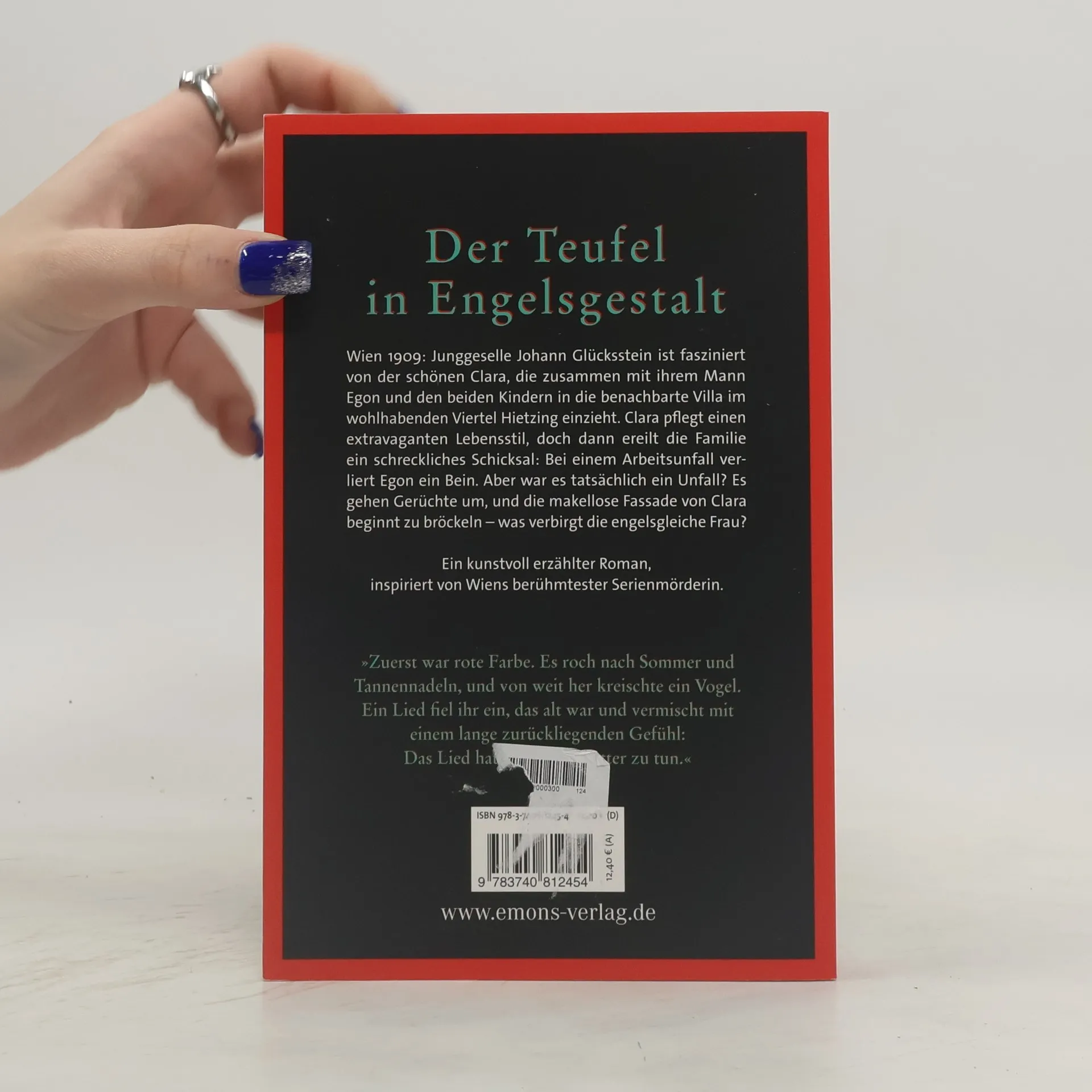Historische Fakten und phantasiereiche Fiktion kunstvoll verwoben zu einem besonderen Roman. Wien 1909: Der junge Historiker Johann ist fasziniert von der schönen Clara, die zusammen mit ihrem Mann Egon und den beiden Kindern in die benachbarte Villa im wohlhabenden Viertel Hietzing einzieht. Clara pflegt einen extravaganten Lebensstil, doch dann ereilt die Familie ein schreckliches Schicksal: Bei einem Arbeitsunfall verliert Egon ein Bein. Aber war es tatsächlich ein Unfall? Es gehen Gerüchte um, und die makellose Fassade von Clara beginnt zu bröckeln – was verbirgt die engelsgleiche Frau?