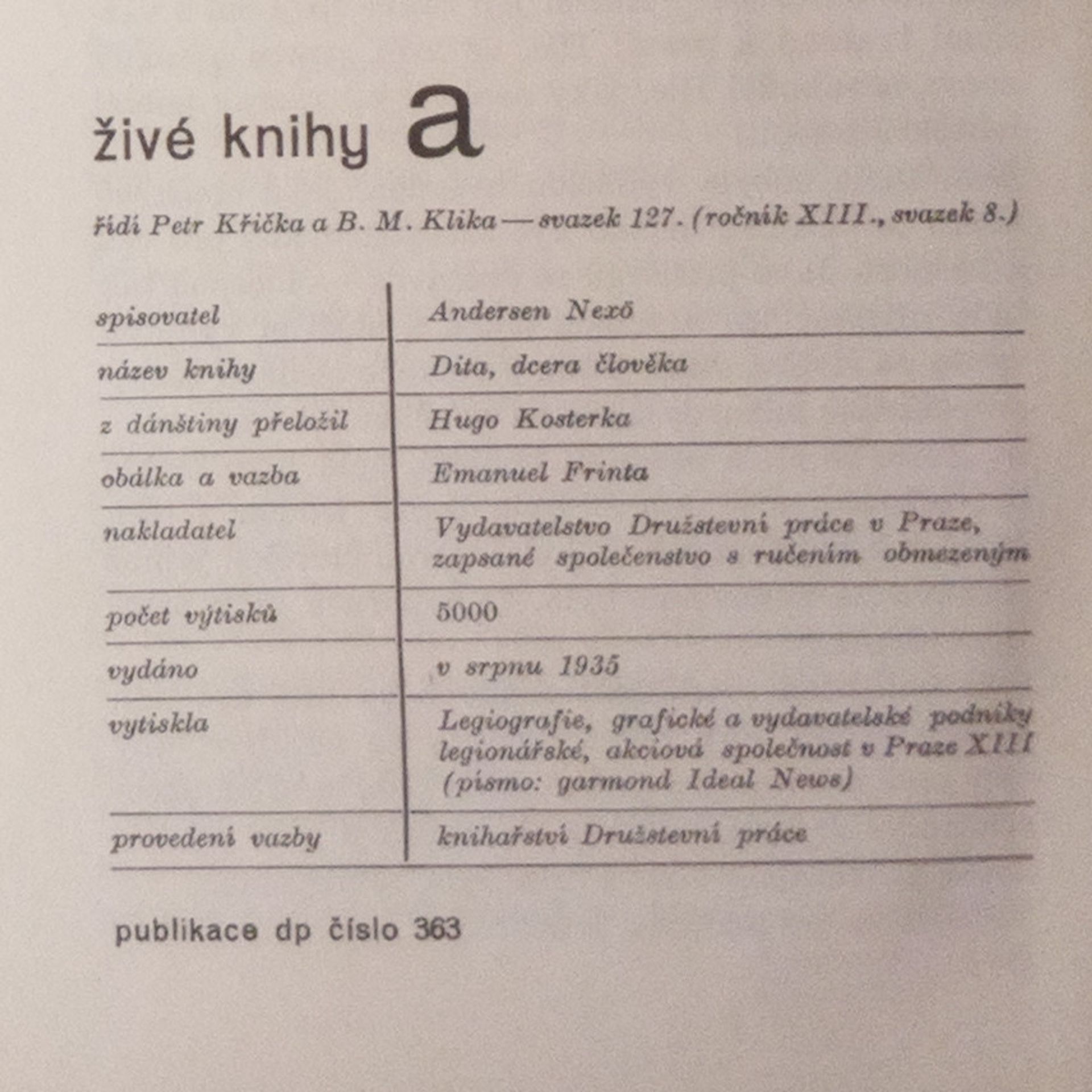 Ditta, dcera člověka, Andersen Nexö