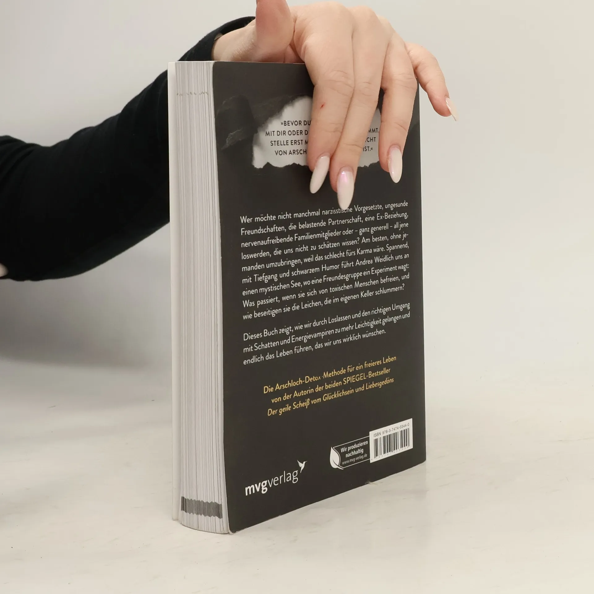 »Bevor du denkst, dass mit dir oder deinem Leben etwas nicht stimmt, stelle erst mal sicher, dass du nicht von Arschlöchern umgeben bist.« Wer möchte nicht manchmal narzisstische Vorgesetzte, ungesunde Freundschaften, die belastende Partnerschaft, eine Ex-Beziehung, nervenaufreibende Familienmitglieder oder – ganz generell – all jene loswerden, die uns nicht zu schätzen wissen? Am besten, ohne jemanden umzubringen, weil das schlecht fürs Karma wäre. Spannend, mit Tiefgang und schwarzem Humor führt Andrea Weidlich uns an einen mystischen See, wo eine Freundesgruppe ein Experiment wagt: Was passiert, wenn sie sich von toxischen Menschen befreien, und wie beseitigen sie die Leichen, die im eigenen Keller schlummern? Dieses Buch zeigt, wie wir durch Loslassen und den richtigen Umgang mit Schatten und Energievampiren zu mehr Leichtigkeit gelangen und endlich das Leben führen, das wir uns wirklich wünschen. Die Arschloch-Detox-Methode für ein freieres Leben von der Autorin der beiden SPIEGEL-Bestseller Der geile Scheiß vom Glücklichsein und Liebesgedöns.