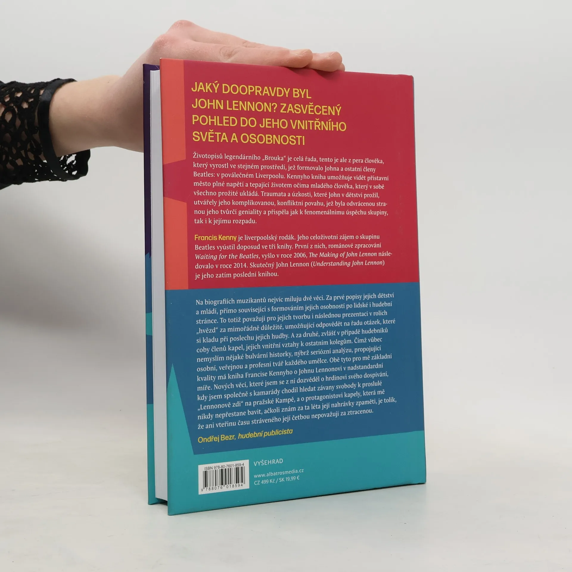 Jaký doopravdy byl John Lennon? Zasvěcený pohled do jeho vnitřního světa a osobnostiŽivotopisů legendárního „brouka“ je celá řada, tento jediný je ale z pera člověka, který vyrostl ve stejném prostředí, jež formovalo Johna a ostatní členy Beatles: v poválečném Liverpoolu. Kennyho kniha umožňuje vidět přístavní město plné napětí a tepající životem očima mladého člověka, který v sobě všechno prožité ukládá. Traumata a úzkosti, které John v dětství prožil, utvářely jeho komplikovanou, konfliktní povahu, jež byla odvrácenou stranou jeho tvůrčí geniality a přispěla jak k fenomenálnímu úspěchu skupiny, tak i k jejímu rozpadu. Francis Kenny se Beatles a postavou Johna Lennona zabývá dlouhodobě, tato kniha je jeho již třetí v pořadí na toto téma.
