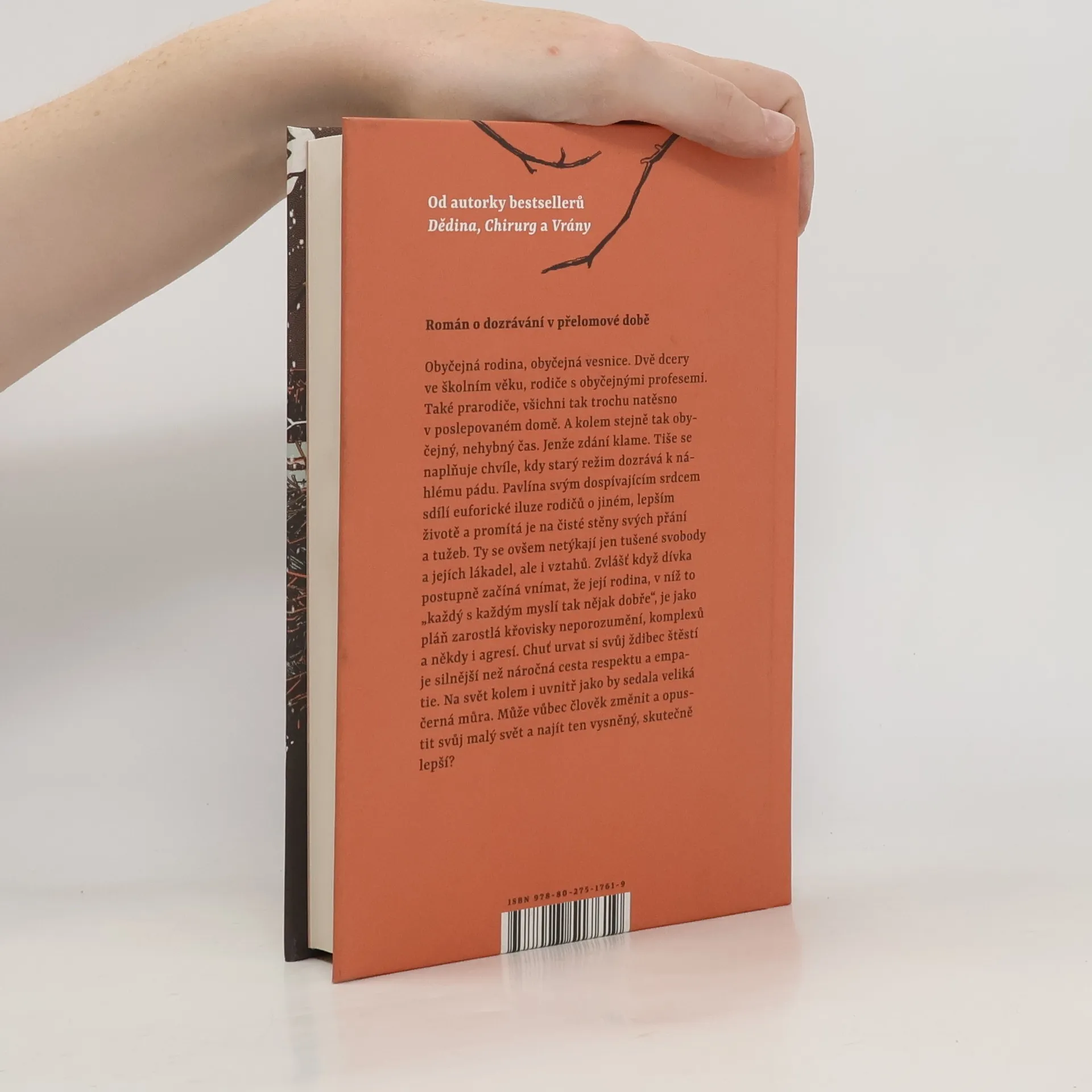 Román o dozrávání v přelomové době.Obyčejná rodina, obyčejná vesnice. Dvě dcery ve školním věku, rodiče s obyčejnými profesemi. Také prarodiče, všichni tak trochu natěsno v poslepovaném, ale jinak úplně obyčejném domě. A kolem stejně tak obyčejný, nehybný čas. Jenže zdání tu klame. Tiše se naplňuje chvíle, kdy starý režim dozrává k náhlému rozpadu. Pavlína, ústřední vypravěčka této vícehlasé prózy, svým dětským srdcem sdílí euforické iluze rodičů o jiném, lepším životě a promítá je na čisté stěny svých tajných přání a tužeb. Ty se ovšem netýkají jen tušené svobody a jejích lákadel, ale i vztahů. Zvlášť když dívka postupně začíná vnímat, že její rodina, v níž to „každý s každým myslí tak nějak dobře“, je jako pláň zarostlá křovisky neporozumění, komplexů a někdy i agresí. Chuť urvat si svůj ždibec štěstí a z toho plynoucí pokušení vykonávat moc je silnější než náročná cesta respektu a empatie. Na svět kolem i uvnitř jako by sedala veliká černá můra. Pavlína už dávno není školačka, ale pořád se jí nedaří vstoupit do dospělého života bez neustálého klopýtání. Může vůbec člověk změnit a opustit svůj malý svět? Zmizí snad tíha s milosrdnou tmou? Anebo naopak s příchodem nějaké větší záře?