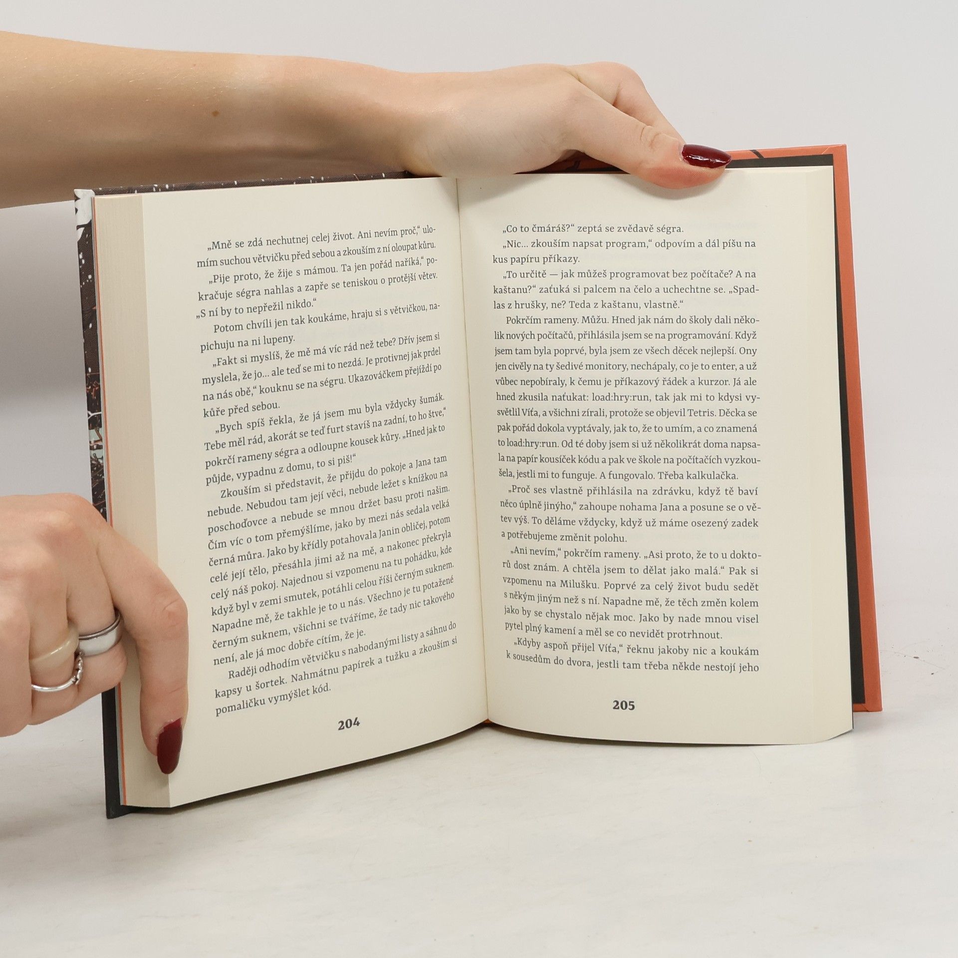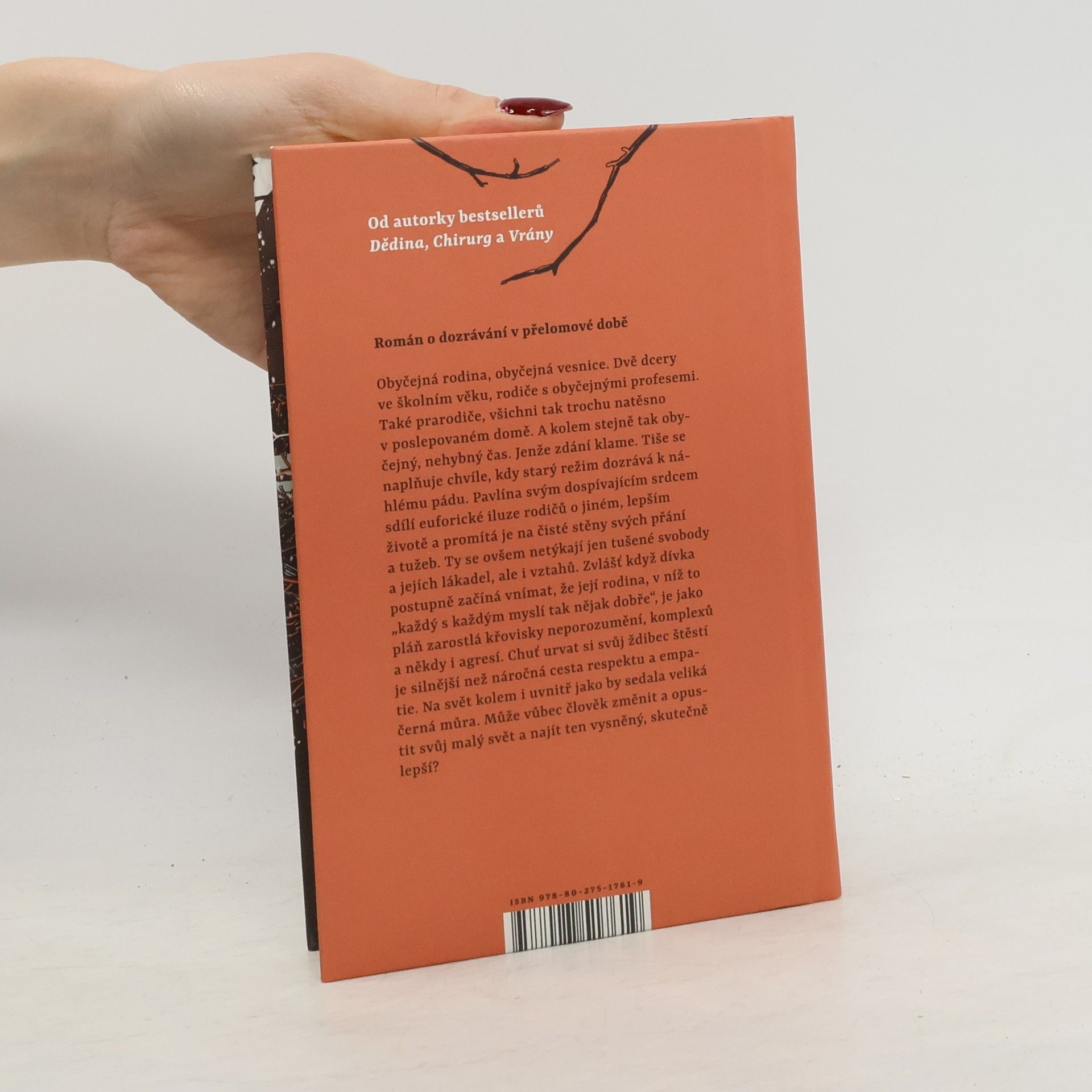 Román o dozrávání v přelomové době.Obyčejná rodina, obyčejná vesnice. Dvě dcery ve školním věku, rodiče s obyčejnými profesemi. Také prarodiče, všichni tak trochu natěsno v poslepovaném, ale jinak úplně obyčejném domě. A kolem stejně tak obyčejný, nehybný čas. Jenže zdání tu klame. Tiše se naplňuje chvíle, kdy starý režim dozrává k náhlému rozpadu. Pavlína, ústřední vypravěčka této vícehlasé prózy, svým dětským srdcem sdílí euforické iluze rodičů o jiném, lepším životě a promítá je na čisté stěny svých tajných přání a tužeb. Ty se ovšem netýkají jen tušené svobody a jejích lákadel, ale i vztahů. Zvlášť když dívka postupně začíná vnímat, že její rodina, v níž to „každý s každým myslí tak nějak dobře“, je jako pláň zarostlá křovisky neporozumění, komplexů a někdy i agresí. Chuť urvat si svůj ždibec štěstí a z toho plynoucí pokušení vykonávat moc je silnější než náročná cesta respektu a empatie. Na svět kolem i uvnitř jako by sedala veliká černá můra. Pavlína už dávno není školačka, ale pořád se jí nedaří vstoupit do dospělého života bez neustálého klopýtání. Může vůbec člověk změnit a opustit svůj malý svět? Zmizí snad tíha s milosrdnou tmou? Anebo naopak s příchodem nějaké větší záře?