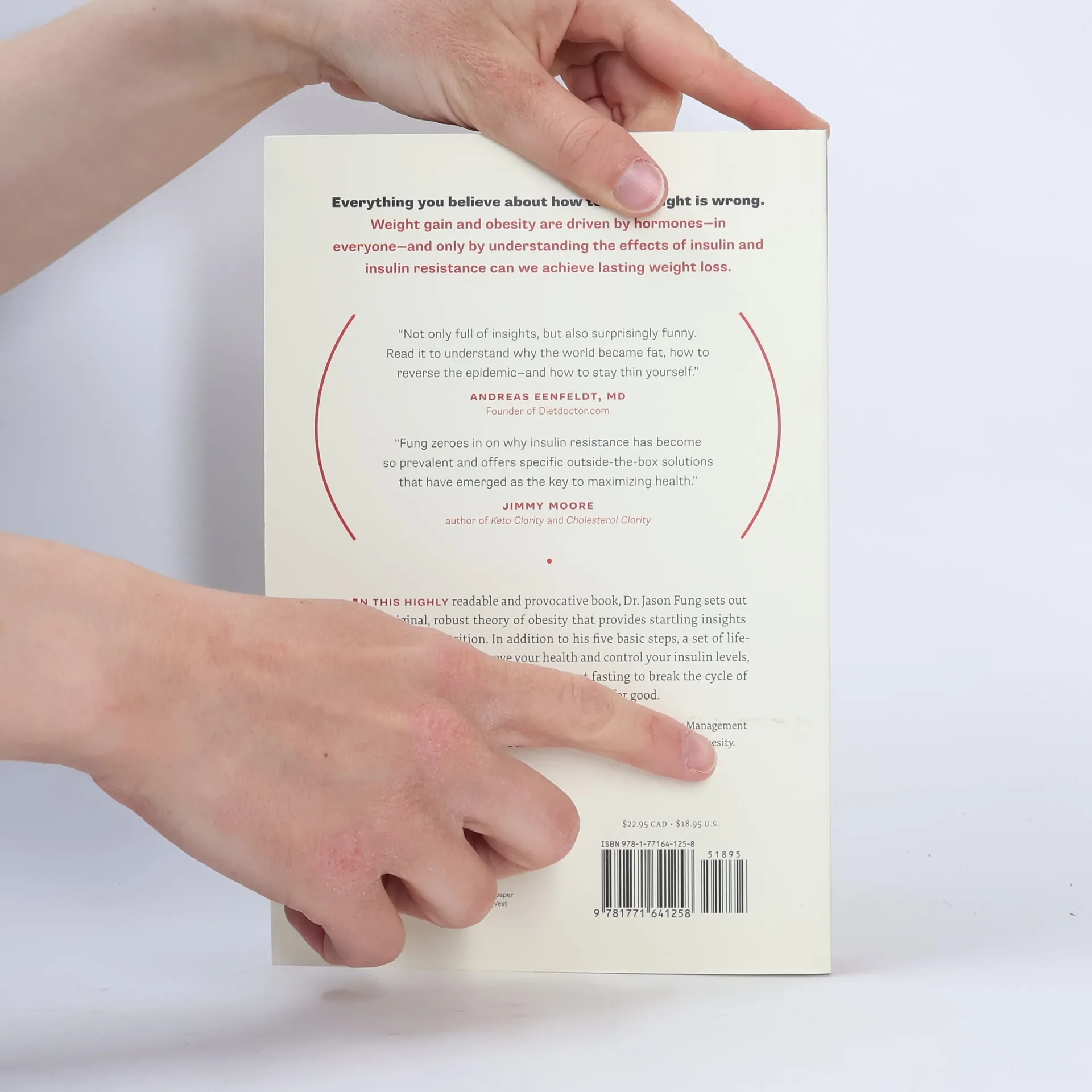 The Obesity Code explores the latest in nutritional science to unearth the root causes of obesity. Rigorous examination of the evidence reveals serious flaws in our fundamental belief that eating too much and moving too little leads to obesity. Unchallenged faith in the calories in/calories out model has actually resulted in our inability to reverse the rapid increase in obesity. In this highly readable and provocative book, Dr. Jason Fung sets out an original, more robust theory of obesity that provides startling insights into proper nutrition. Obesity is a hormonal, not a caloric, imbalance. Dr. Fung provides practical, effective advice on weight loss and the treatment of type-2 diabetes based on sound scientific principles.