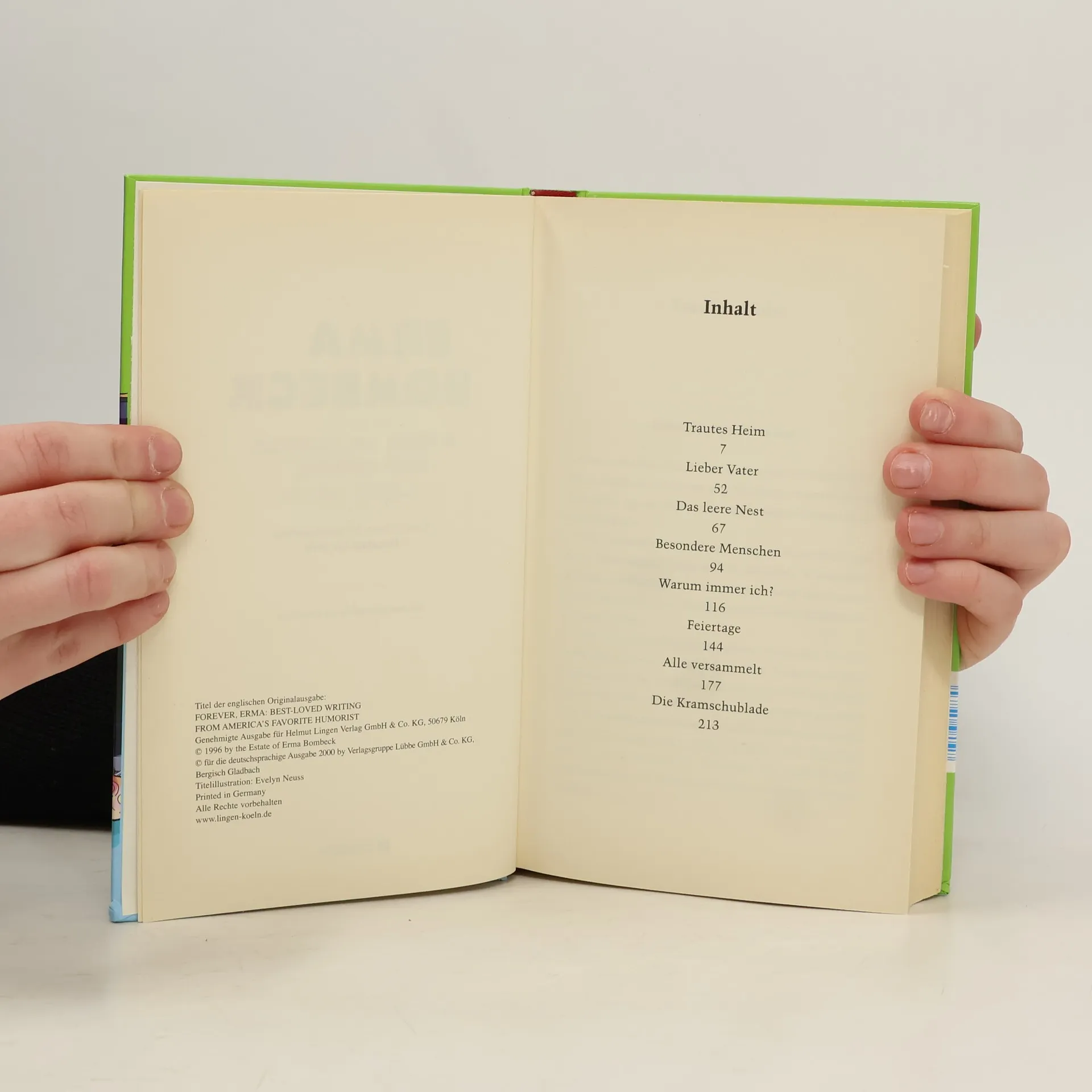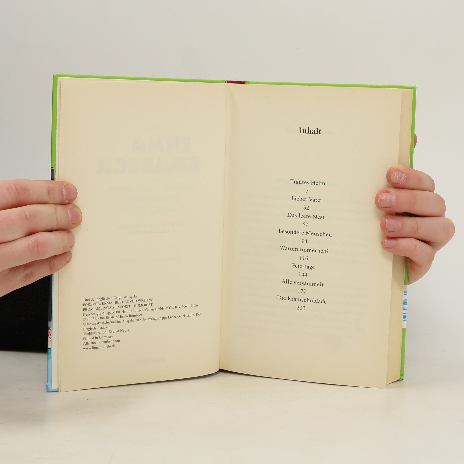 Wenn Erma Bombeck zum Lesen einlädt, kommt jeder auf seine Kosten! Zum Beispiel wenn sie vor Heimwerkern und gärtnernden Ehemännern warnt, Haushaltstips gibt, die es in sich haben, und erzählt, wie sie das "Leere-Nest-Syndrom" spielend verkraftet hat. Sie klärt darüber auf, was "zwanglose Kleidung erwünscht" wirklich heißt, und gibt lebenswichtige Hinweise zur diskreten Entsorgung von Partyhäppchen. Oder wollen sie wissen, wie die Maus ins Klavier kam und warum Amerikaner dem kontinentalen Frühstück misstrauen? Dann herzlich Willkommen bei Erma Bombeck, deren Geschichten, ob heiter oder besinnlich niemanden unberührt lassen. Mit ihrem unnachahmlichen Gespür für das Komische im Alltag schaut die berühmteste Hausfrau der Welt wieder genau hin.