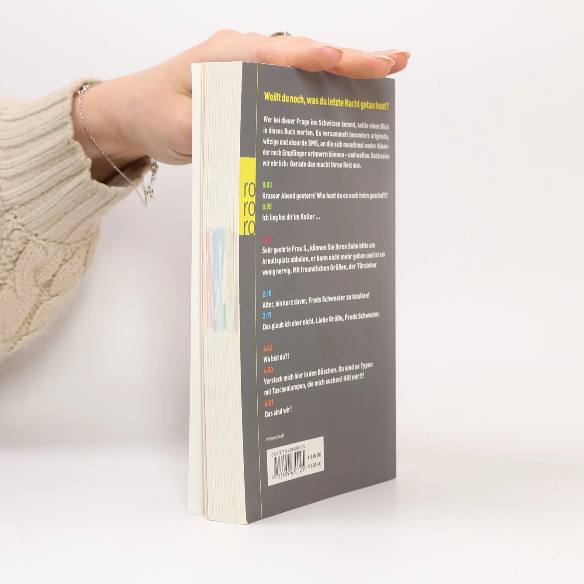 Nach den Bestsellern «Du hast mich auf dem Balkon vergessen» und «Ist meine Hose noch bei euch?» schicken Anna Koch und Axel Lilienblum ihre Leser bereits zum dritten Mal auf eine Reise durch die lustigsten und schönsten SMS-Nachrichten des letzten Jahres.Auf ihrer Website SMSvonGesternNacht.de sammeln sie seit 2009 kryptische Dialoge, fehlgeleitete Liebesbotschaften und andere Skurrilitäten aus dem Alltag der «Mobile Generation». Mit einer Auswahl aus Zehntausenden anonymer Einsendungen führt das vorliegende Buch wieder durch vierundzwanzig amüsante Stunden voller Geschichten, die das Leben selbst schrieb.