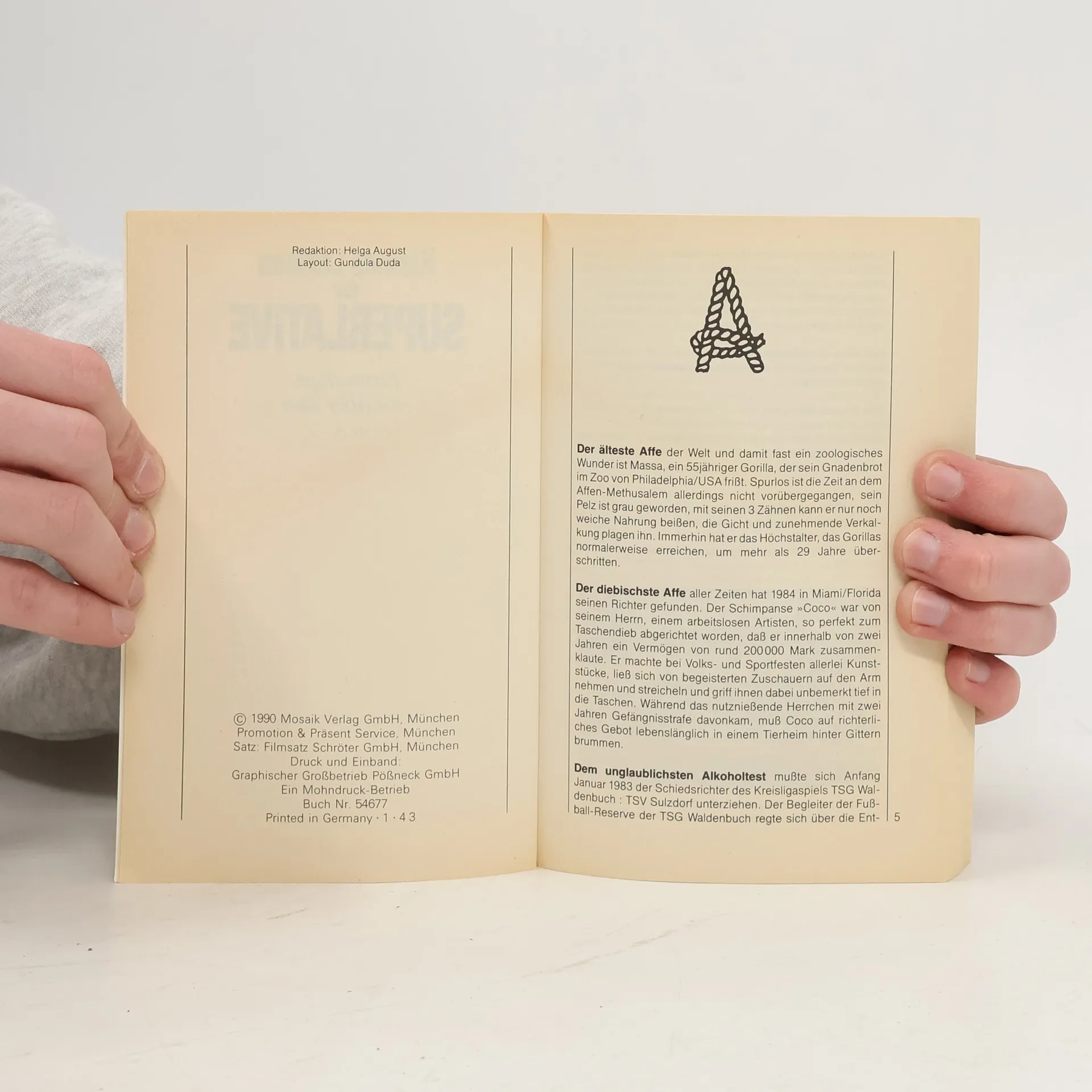 Skladem máme celkem knihy Kleines Lexikon der Superlative. Einmaliges aus aller Welt von A-Z (1990).