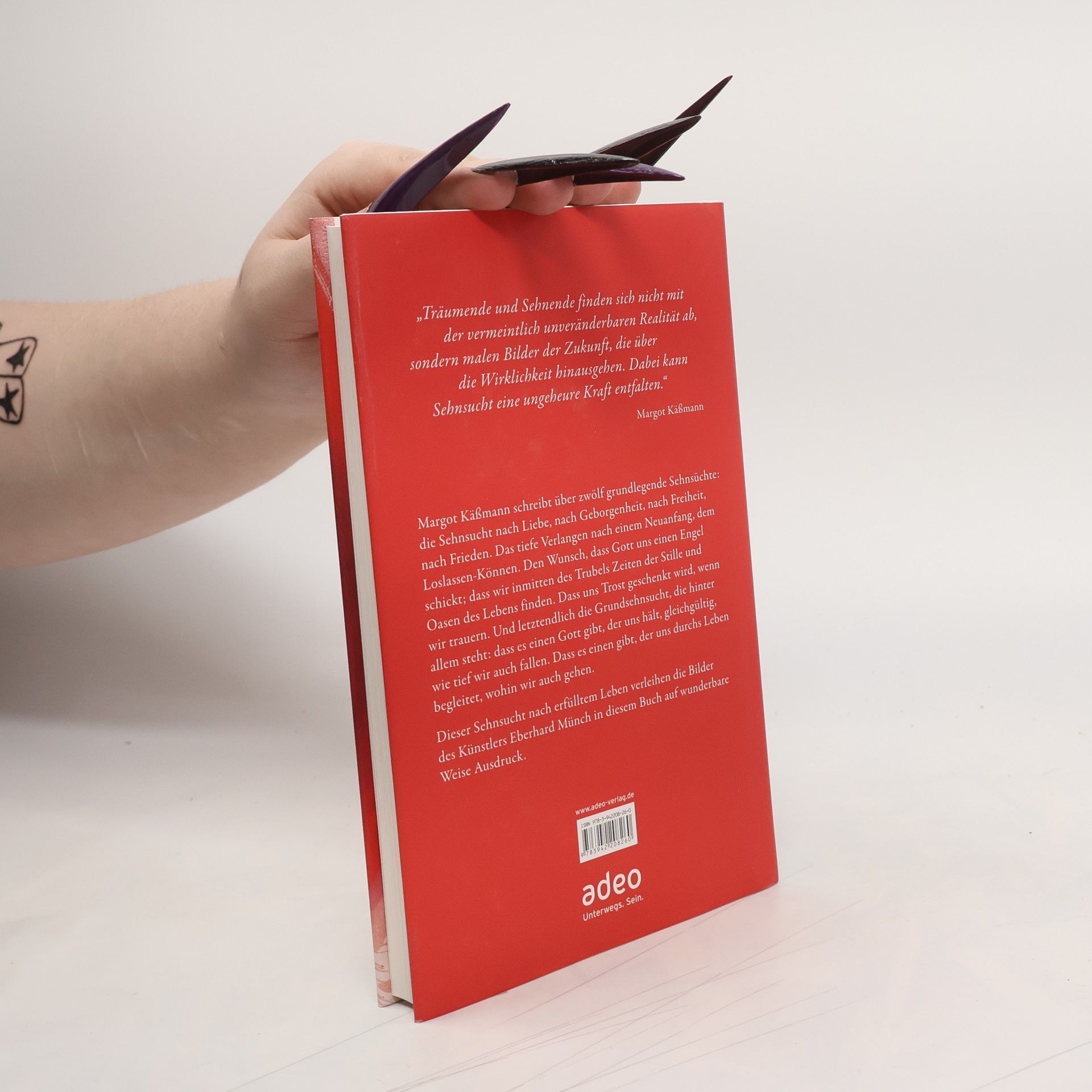 Margot Käßmann schreibt über zwölf grundlegende Sehnsüchte: die Sehnsucht nach Liebe, nach Geborgenheit, nach Freiheit, nach Frieden. Das tiefe Verlangen nach einem Neuanfang, dem Loslassen-Können. Den Wunsch, dass Gott uns einen Engel schickt; dass wir inmitten des Trubels Zeiten der Stille und Oasen des Lebens finden. Dass uns Trost geschenkt wird, wenn wir trauern. Und letztendlich die Grundsehnsucht, die hinter allem steht: dass es einen Gott gibt, der uns hält, egal, wie tief wir auch fallen. Dass es einen gibt, der uns durchs Leben begleitet, wohin wir auch gehen. Die im Buch enthaltenen Bilder des Künstlers Eberhard Münch, dessen Werk Margot Käßmann besonders schätzt, spiegeln das Verlangen nach einer anderen Welt. „Die Sehnenden sind wie die Träumenden. Sie denken über Grenzen hinaus. Sie malen Bilder, die über die Wirklichkeit hinausgehen. Sie finden sich nicht ab mit der vermeintlich unveränderbaren Realität. Dabei kann Sehnsucht eine ungeheure Kraft entfalten.“ Margot Käßmann