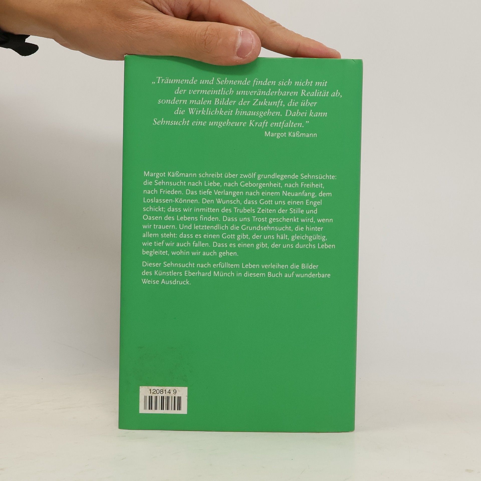 Margot Käßmann schreibt über zwölf grundlegende Sehnsüchte: die Sehnsucht nach Liebe, nach Geborgenheit, nach Freiheit, nach Frieden. Das tiefe Verlangen nach einem Neuanfang, dem Loslassen-Können. Den Wunsch, dass Gott uns einen Engel schickt; dass wir inmitten des Trubels Zeiten der Stille und Oasen des Lebens finden. Dass uns Trost geschenkt wird, wenn wir trauern. Und letztendlich die Grundsehnsucht, die hinter allem steht: dass es einen Gott gibt, der uns hält, egal, wie tief wir auch fallen. Dass es einen gibt, der uns durchs Leben begleitet, wohin wir auch gehen. Die im Buch enthaltenen Bilder des Künstlers Eberhard Münch, dessen Werk Margot Käßmann besonders schätzt, spiegeln das Verlangen nach einer anderen Welt. „Die Sehnenden sind wie die Träumenden. Sie denken über Grenzen hinaus. Sie malen Bilder, die über die Wirklichkeit hinausgehen. Sie finden sich nicht ab mit der vermeintlich unveränderbaren Realität. Dabei kann Sehnsucht eine ungeheure Kraft entfalten.“ Margot Käßmann
