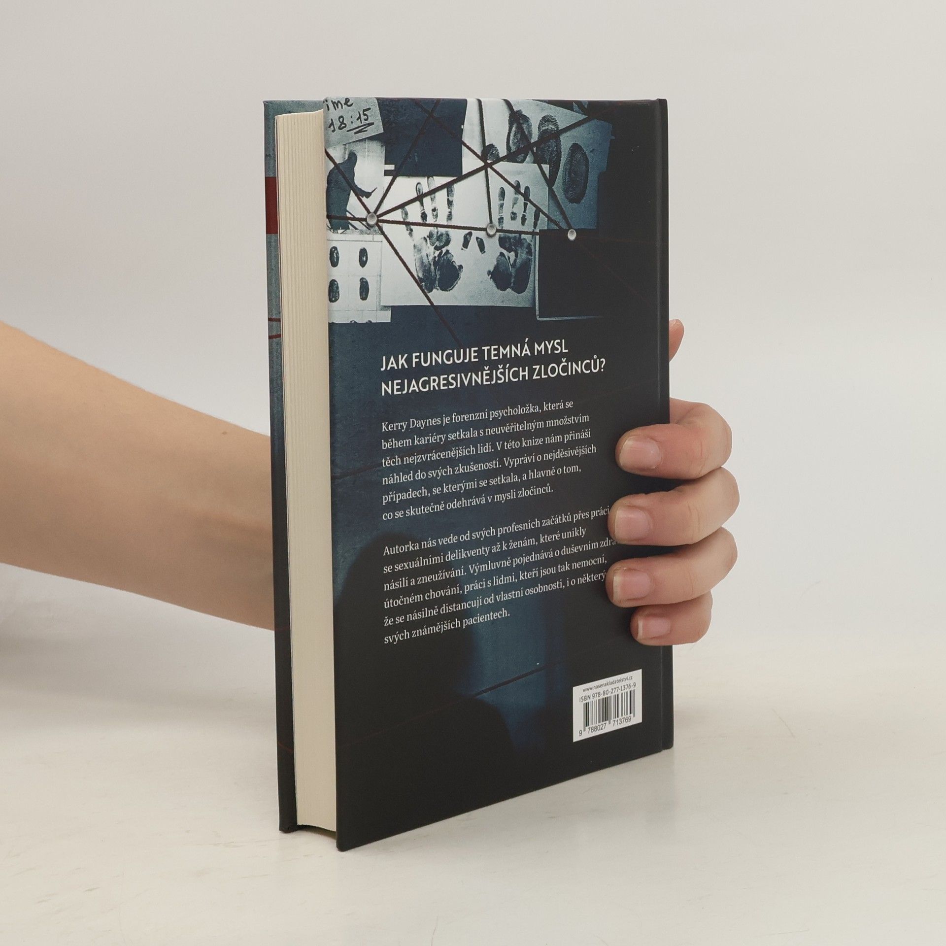 Vítejte ve světě forenzního psychologa, světě, ve kterém se setkáte s nepředvídatelnými a často děsivými lidmi.Úkolem forenzního psychologa je proniknout do myslí odsouzených mužů a žen a pokusit se pochopit, co se skrývá za jejich často brutálními činy.Vydejte se po stopách Kerry Daynes, jedné z nejvyhledávanějších forenzních psycholožek v oboru, která pomáhá při velkých policejních vyšetřováních.Kerry se při své práci dostala do cel věznic s maximální ostrahou, policejních výslechových místností, nemocnic pro duševně choré zločince i na lavici svědků v soudní síni.Její práce pomohla vyřešit dlouho odložené případy, usvědčit viníky a zabránit hrozivým útokům.Trávit každý okamžik života pohledem na temnou stránky života má svou cenu. Kerryiny upřímné memoáry přinášejí nezapomenutelný pohled na osobní i profesní nebezpečí, která na psycholožku, jako je ona, číhají.