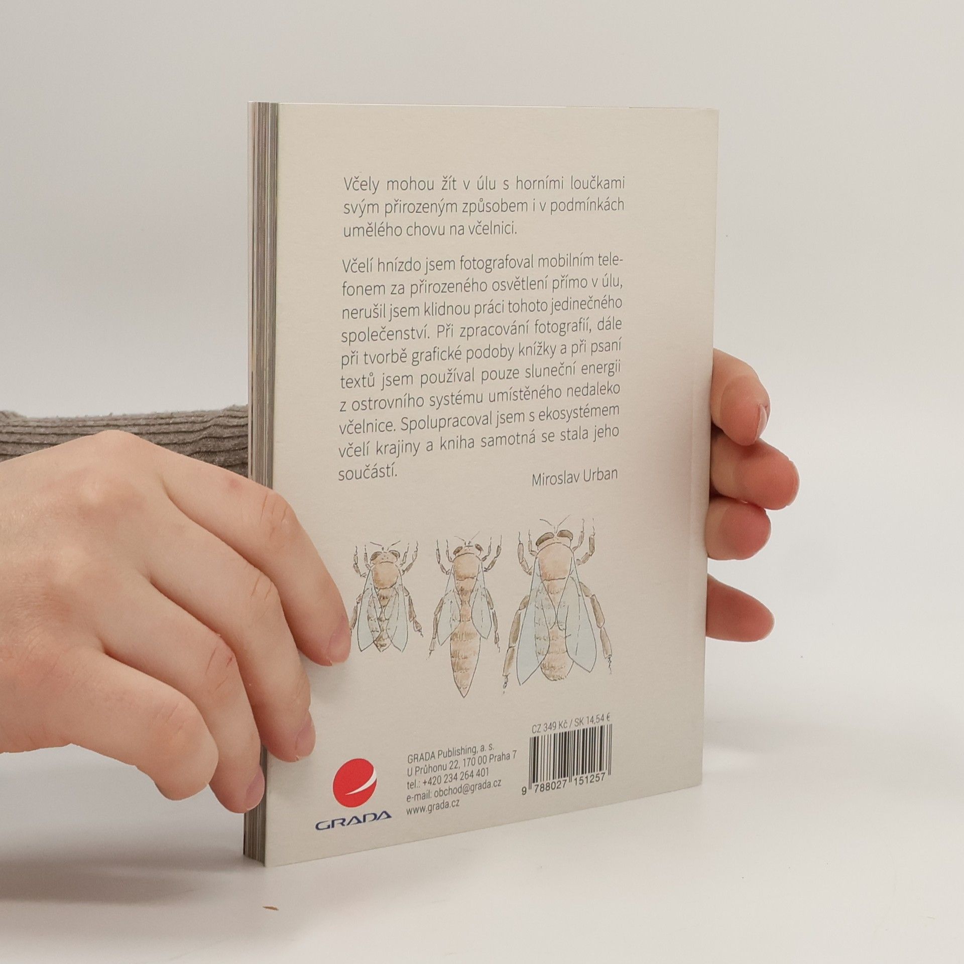Mohou žít včely přirozeným způsobem i v podmínkách umělého chovu na včelnici? Ano, v úlu s horními loučkami. O jednom takovém – a nejen o něm – vypráví ve své další knize včelař a popularizátor včelaření Miroslav Urban."Včelí hnízdo jsem fotografoval mobilním telefonem za přirozeného osvětlení přímo v úlu, nerušil jsem klidnou práci tohoto jedinečného společenství. Při zpracování fotografií, dále při tvorbě grafické podoby knížky a při psaní textů jsem používal pouze sluneční energii z ostrovního systému umístěného nedaleko včelnice. Spolupracoval jsem s ekosystémem včelí krajiny a kniha samotná se stala jeho součástí."