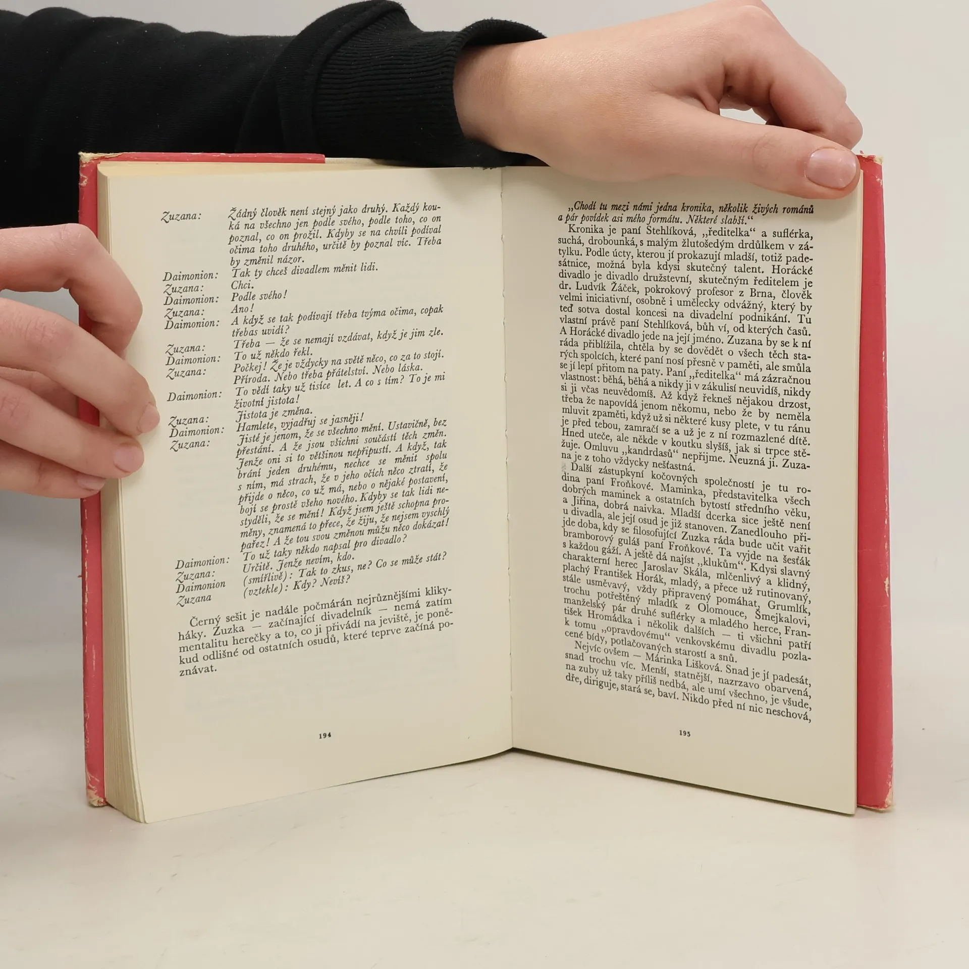 Knižní beletristický debut autorky, autobiografický román, v němž s odstupem let vzpomíná na rodiče, dětství, dospívání, herecké začátky v D 40 a na léta okupace: vyprávění končí znovusetkáním s E.F.Burianem, který se vrátil z koncentračního tábora a rozbíhá se k další umělecképráci. Pět sešitů ze začátku je především román o zrání herečky, ztvárněný jako proces, během něhož se z "holky jako kluk", trpící pocity nezařaditelnosti, zato však s upřímným a horkým srdcem, rodí bytost prostoupená potřebou hrát divadlo. Je současně i živým svědectvím o době, která formovala rodiče a autorku samu.