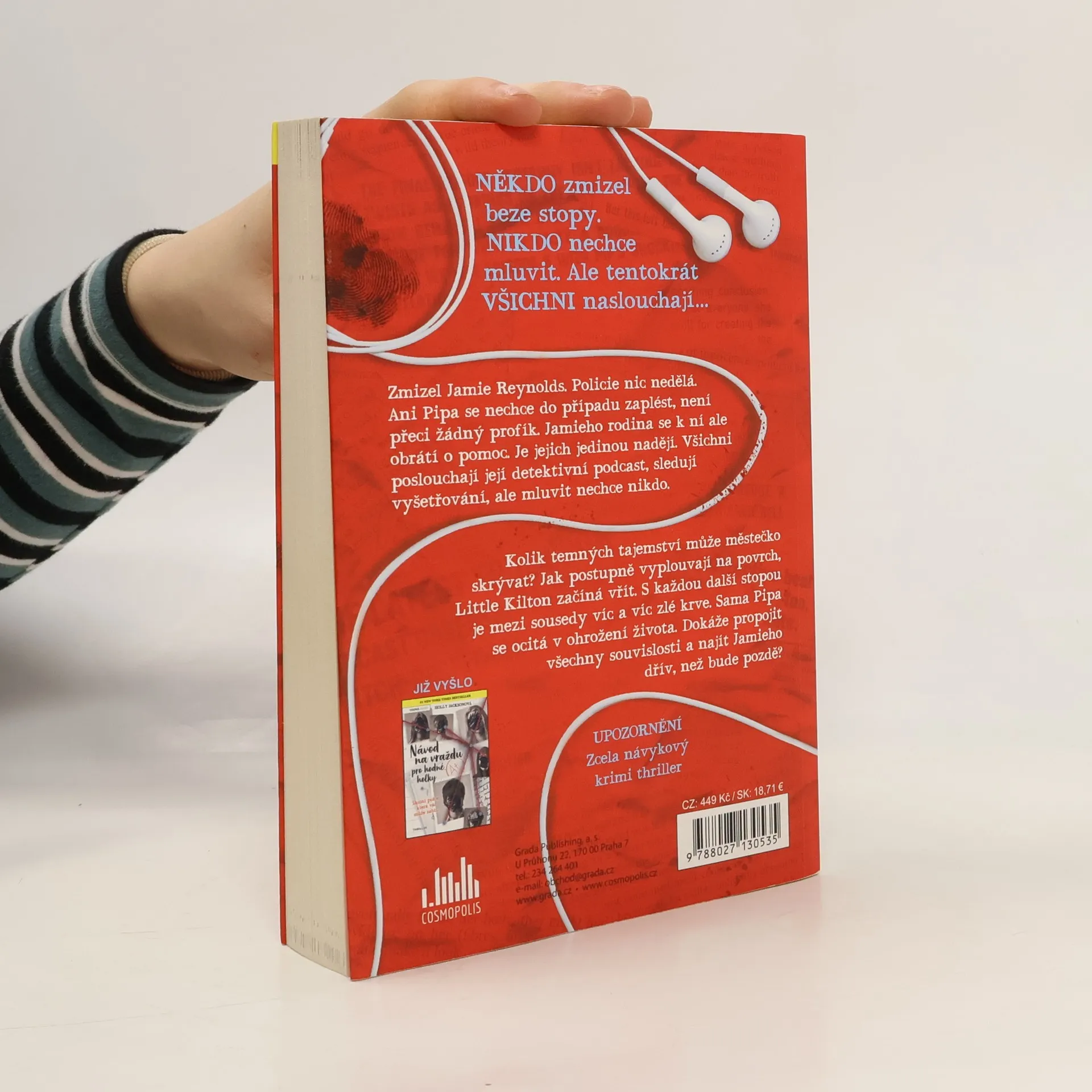 NĚKDO zmizel beze stopy. NIKDO nechce mluvit. Ale tentokrát VŠICHNI naslouchají. Zmizel Jamie Reynolds. Policie nic nedělá. Ani Pipa se nechce do případu zaplést, není přeci žádný profík. Jamieho rodina se k ní ale obrátí o pomoc. Je jejich jedinou nadějí. Všichni poslouchají její detektivní podcast, sledují vyšetřování, ale mluvit nechce nikdo. Kolik temných tajemství může městečko skrývat? Jak postupně vyplouvají na povrch, Little Kilton začíná vřít. S každou další stopou je mezi sousedy víc a víc zlé krve. Sama Pipa se ocitá v ohrožení života. Dokáže propojit všechny souvislosti a najít Jamieho dřív, než bude pozdě?