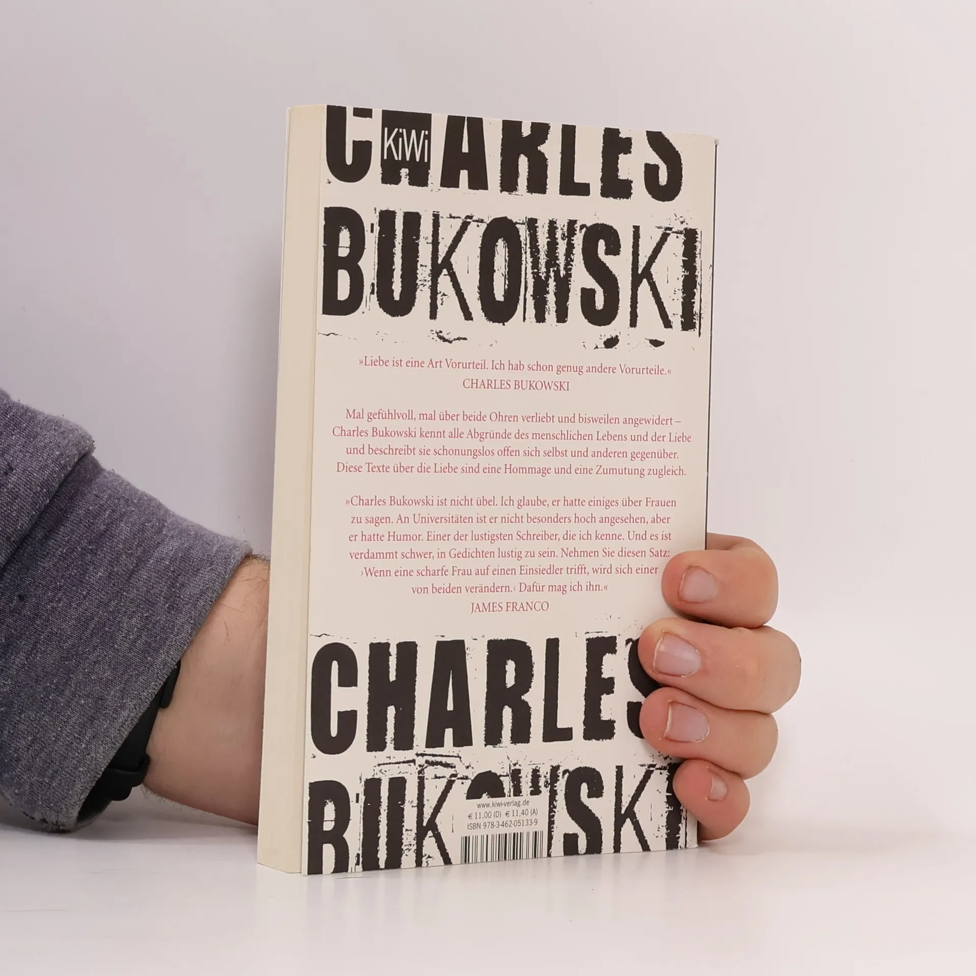 »Liebe ist eine Art Vorurteil. Ich hab schon genug andere Vorurteile.« Charles Bukowski. Mal gefühlvoll, mal über beide Ohren verliebt und bisweilen angewidert – Charles Bukowski kennt alle Abgründe des menschlichen Lebens und der Liebe und beschreibt sie schonungslos offen sich selbst und den anderen gegenüber. Diese Texte über die Liebe sind eine Hommage und eine Zumutung zugleich.»Charles Bukowski ist nicht übel. Ich glaube, er hatte einiges über Frauen zu sagen. An Universitäten ist er nicht besonders hoch angesehen, aber er hatte Humor. Einer der lustigsten Schreiber, die ich kenne. Und es ist verdammt schwer, in Gedichten lustig zu sein. Nehmen Sie diesen Satz: ›Wenn eine scharfe Frau auf einen Einsiedler trifft, wird sich einer von beiden verändern.‹ Dafür mag ich ihn.« James Franco