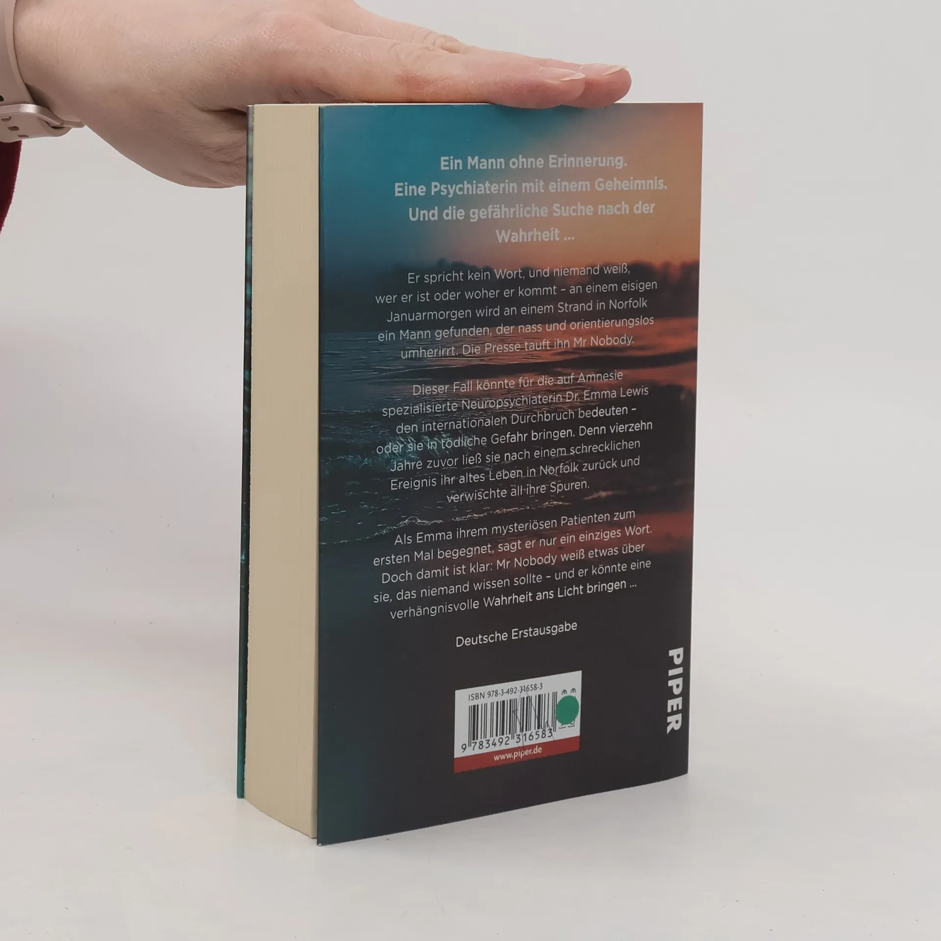 Ein Mann ohne Erinnerung und eine junge Neuropsychiaterin mit einer dunklen Vergangenheit begeben sich auf eine gefährliche Suche nach der Wahrheit. An einem kalten Januarmorgen wird ein orientierungsloser Mann an einem Strand in Norfolk gefunden. Die Presse nennt ihn Mr Nobody, da er nicht spricht und seine Identität unbekannt ist. Für Dr. Emma Lewis, die Neuropsychiaterin, könnte dieser Fall der Durchbruch ihrer Karriere sein. Doch vor vierzehn Jahren floh sie aus derselben Stadt nach einem traumatischen Ereignis und versuchte, ihre Vergangenheit zu verbergen. Als sie Mr Nobody zum ersten Mal begegnet, wird ihr klar, dass er ein Geheimnis über sie kennt, das niemand wissen sollte. Diese Erkenntnis birgt eine große Gefahr für sie. Die Kritiken loben den Thriller als originell, scharfsinnig und fesselnd. Mit zahlreichen Wendungen und einem mitreißenden Tempo wird die Geschichte als absolut spannend beschrieben. Steadman gelingt es, die Ereignisse von der ersten Sekunde an packend zu gestalten und einen faszinierenden Thriller zu präsentieren, der perfekt für stürmische Nächte ist. Catherine Steadman ist nicht nur Schriftstellerin, sondern auch Schauspielerin und hat in bekannten Serien mitgewirkt. Ihr Debüt wurde von Reese Witherspoon empfohlen und erreichte die Spitze der Bestsellerliste.