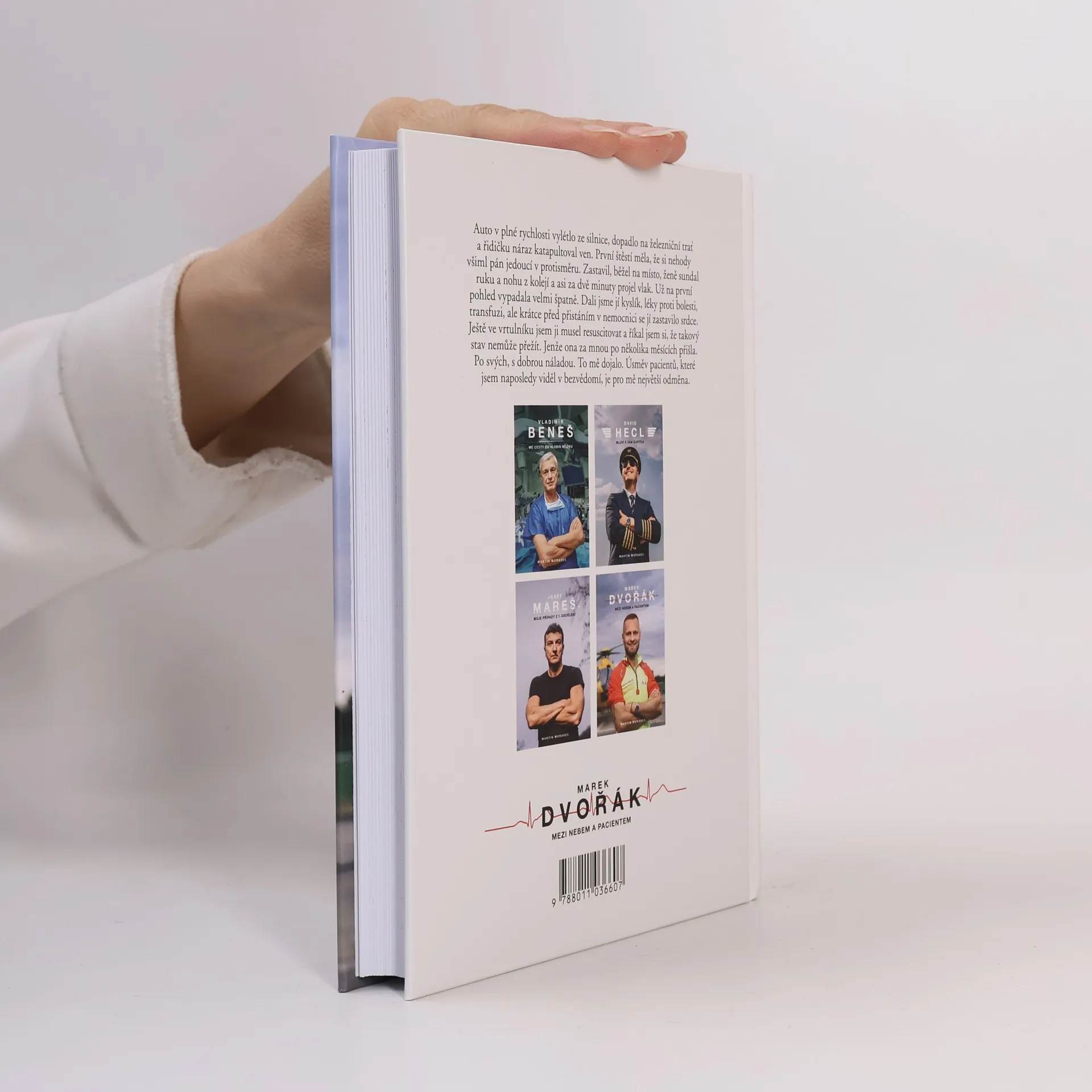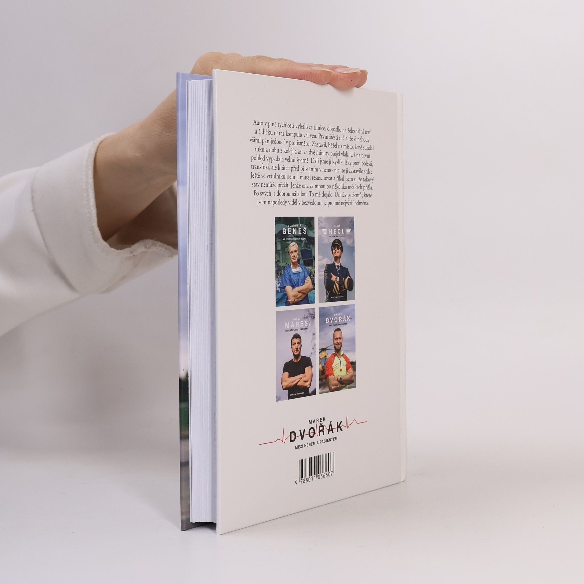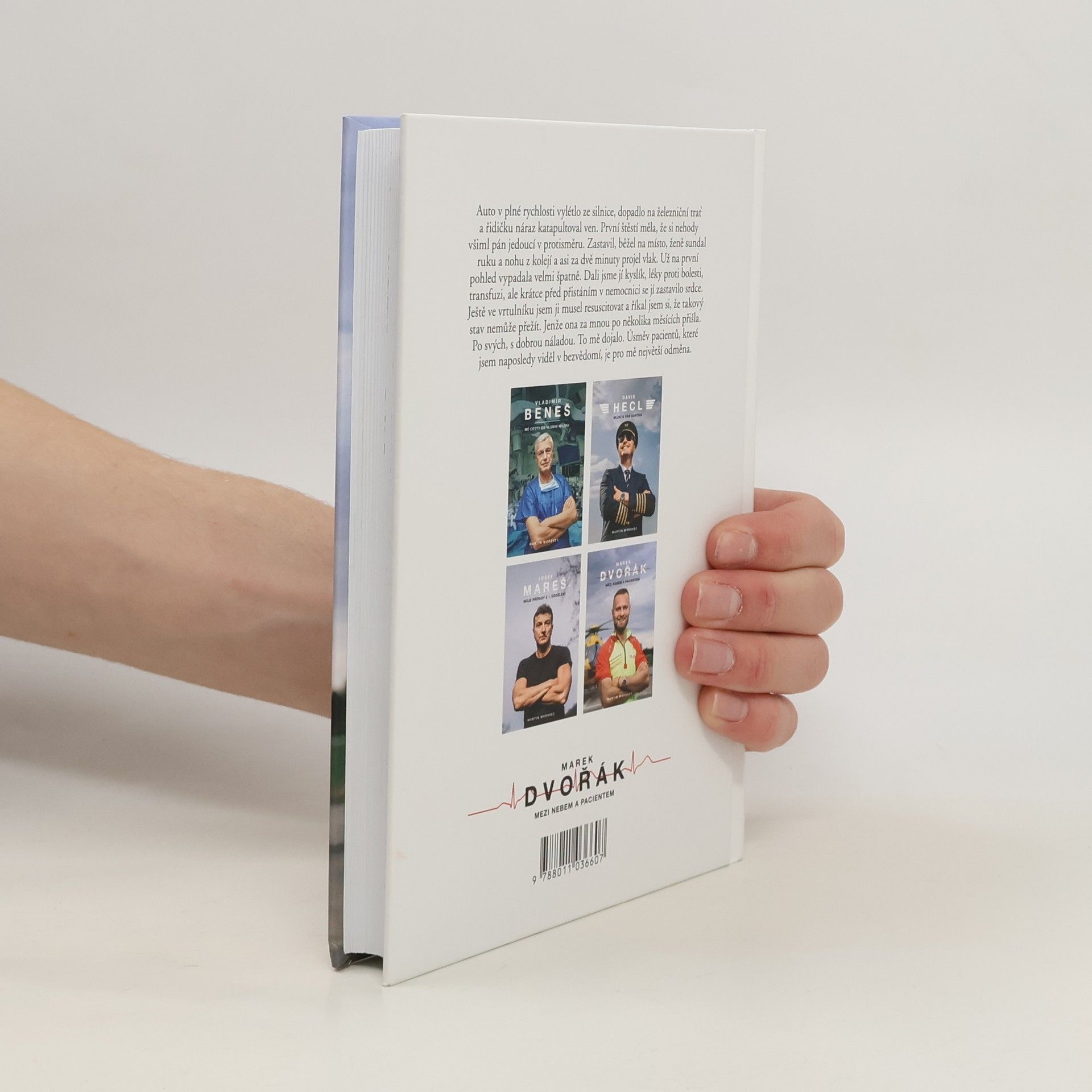 Při jeho práci jde o vteřiny. Během nich se musí rozhodnout, vytěsnit emoce a často si i sáhnout na dno. Lékař letecké záchranky Marek Dvořák takové situace zažívá denně a teď i vás vezme do světa, o kterém snil už jako malý kluk.Jak vypadá práce doktora ve vrtulníku? Na které vzlety nikdy nezapomene? Kdy měl při zásahu strach a co už by ve službě nechtěl zažít? Je to vyprávění, při kterém se občas tají dech. Chvílemi je dojemné a jindy vás naopak rozesměje. Taky vás naučí, že při první pomoci se není čeho bát, a možná i přiměje víc přemýšlet nad tím, co v životě děláte.Dvořák je mezi českými doktory svéráz. A to nejen kvůli mnoha tetováním, která má po těle. Pro kontroverzní názor nejde daleko, má osobitý smysl pro humor, ale zároveň je na každé jeho větě znát, jak moc medicínou žije. Když vypráví o pacientce, která ho po několika měsících od těžkého úrazu překvapila návštěvou a u které si myslel, že nemohla přežít, dojde i na slzy.