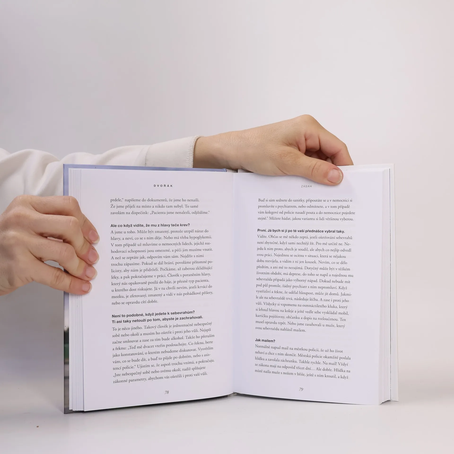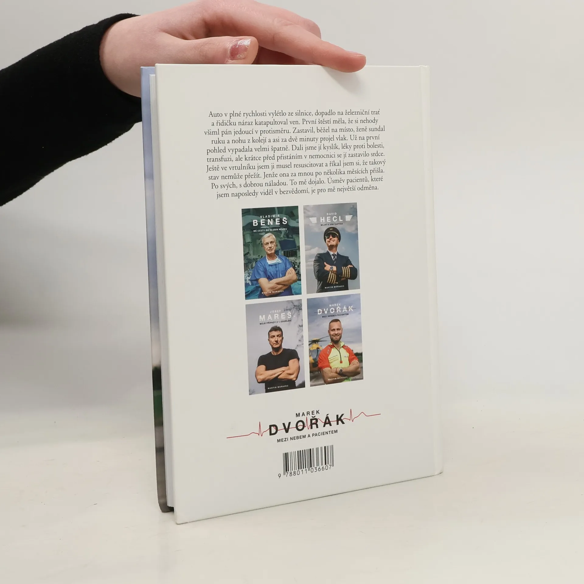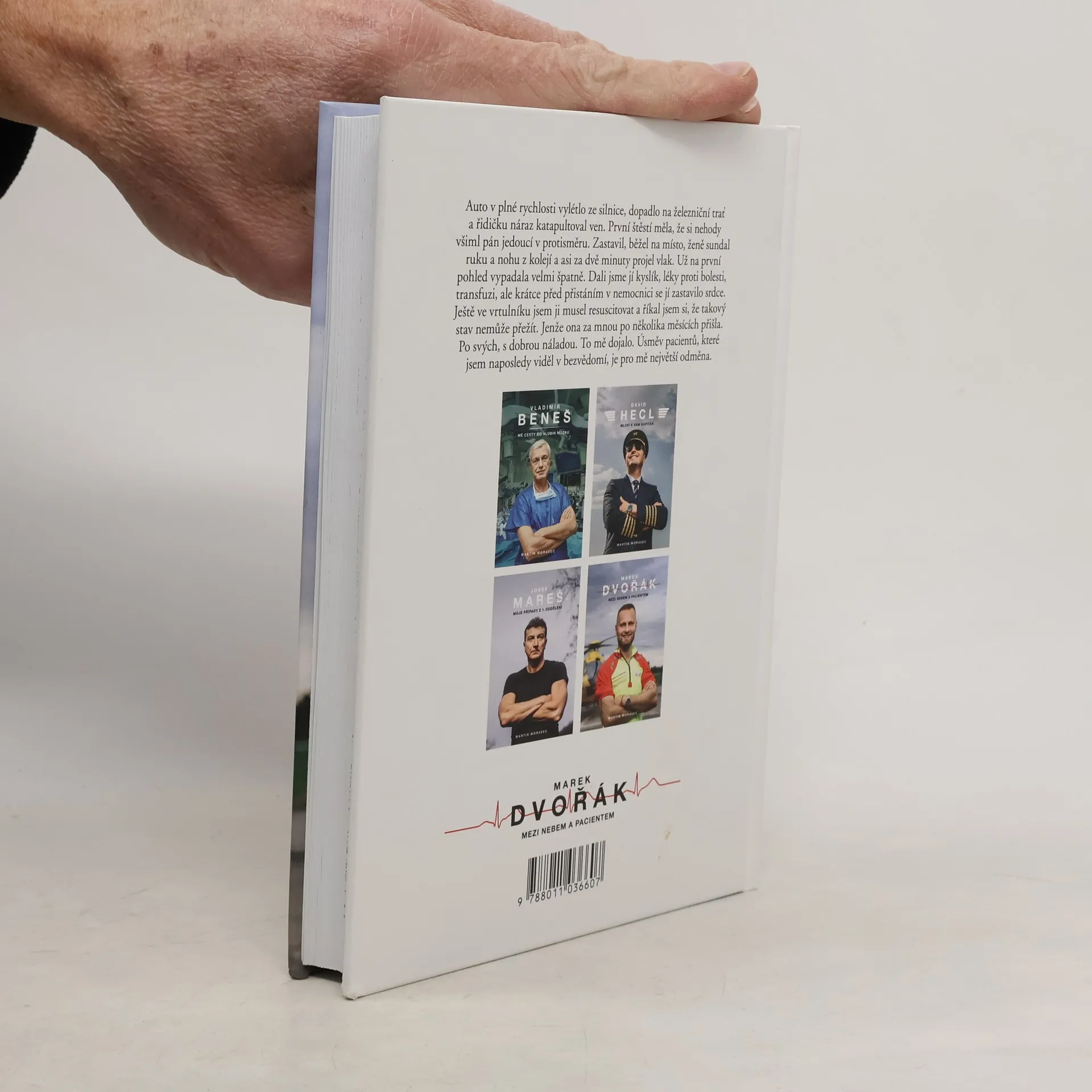 Při jeho práci jde o vteřiny. Během nich se musí rozhodnout, vytěsnit emoce a často si i sáhnout na dno. Lékař letecké záchranky Marek Dvořák takové situace zažívá denně a teď i vás vezme do světa, o kterém snil už jako malý kluk.Jak vypadá práce doktora ve vrtulníku? Na které vzlety nikdy nezapomene? Kdy měl při zásahu strach a co už by ve službě nechtěl zažít? Je to vyprávění, při kterém se občas tají dech. Chvílemi je dojemné a jindy vás naopak rozesměje. Taky vás naučí, že při první pomoci se není čeho bát, a možná i přiměje víc přemýšlet nad tím, co v životě děláte.Dvořák je mezi českými doktory svéráz. A to nejen kvůli mnoha tetováním, která má po těle. Pro kontroverzní názor nejde daleko, má osobitý smysl pro humor, ale zároveň je na každé jeho větě znát, jak moc medicínou žije. Když vypráví o pacientce, která ho po několika měsících od těžkého úrazu překvapila návštěvou a u které si myslel, že nemohla přežít, dojde i na slzy.
