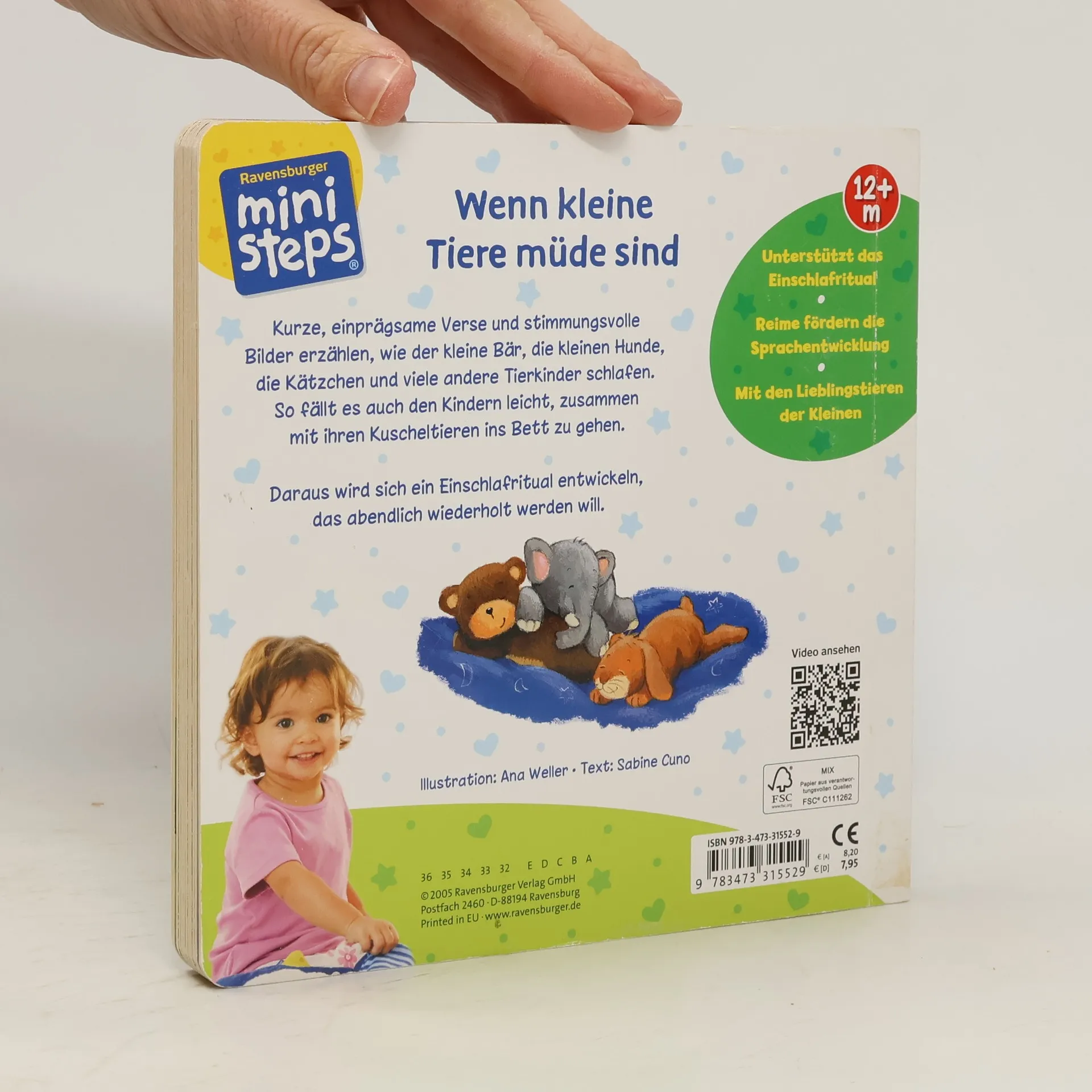 Ein Lieblings-Gutenacht-Buch für die Kleinsten! Liebevolle Gute-Nacht-Szenen zeigen, wie der kleine Bär, die kleinen Hunde und viele andere Tierkinder schlafen gehen. Zweiundzwanzig stimmungsvolle Bilder begleiten die Geschichten. Kurze emotionale Reime animieren zum Mitsprechen und sind ein ideales Ritual für Kinder, sodass es ihnen leichtfällt, ins Bett zu gehen. Diese besondere Geschichte bietet ein wunderschönes Einschlafritual und sollte in keinem Kinderzimmer fehlen. Die Bären schlafen in ihrer Höhle, die Schnecke zieht sich in ihr Haus zurück, und die Hundekinder kuscheln sich aneinander. Wie schlafen Igelkinder, Löwenbabys und kleine Pinguine? Fast 20 verschiedene Tierkinder werden liebevoll zu Bett gebracht. Die stimmungsvollen Bilder zeigen die Tiere und ihre Kinder in ihrem natürlichen Zuhause und bieten viele Gesprächsanlässe für Eltern und Kind. Die Reime führen durch das Buch, bis auch das Kind mit seinen Kuscheltieren schlafen geht. So wird das Einschlafen kinderleicht. - Unterstützt das Einschlafritual - Reime fördern die Sprachentwicklung - Mit den Lieblingstieren der Kleinen Vertrauen schenken. ministeps begleitet Babys und Kleinkinder auf ihren ersten Schritten ins Leben. Die vielfältigen ministeps Produkte bieten optimale Sinnesanreize, fördern das Erkennen von Farben, Formen und Bildern und ermutigen zum Krabbeln und Sprechen. Alle Produkte sind von höchster Ravensburger Qualität.