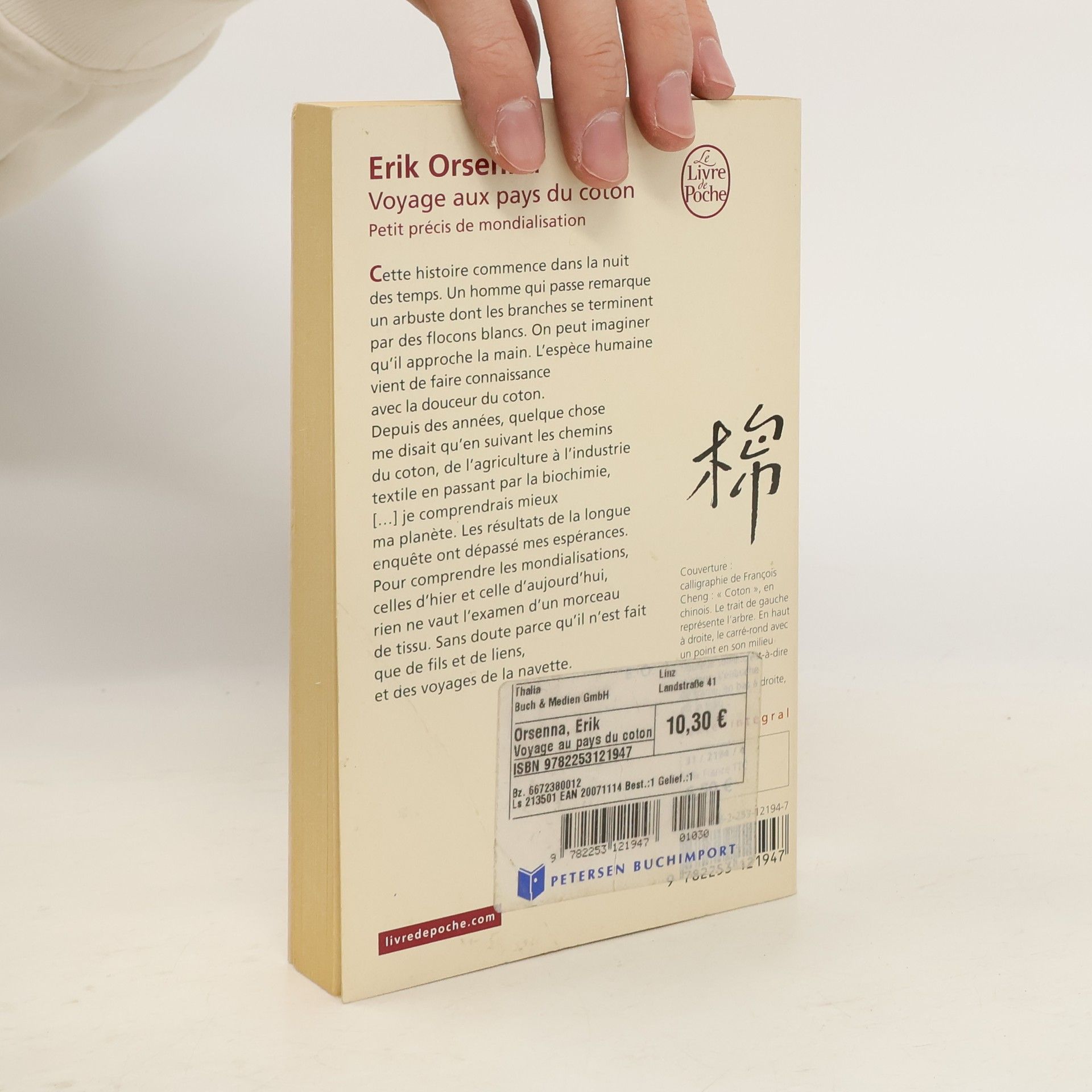 Dans ce livre, Érik Orsenna explore l'univers du coton à travers un voyage de Mali à France. Il examine la globalisation de cette matière première, reliant agriculture, industrie textile et biochimie, tout en révélant comment un simple morceau de tissu peut éclairer notre compréhension des mondialisations passées et présentes.