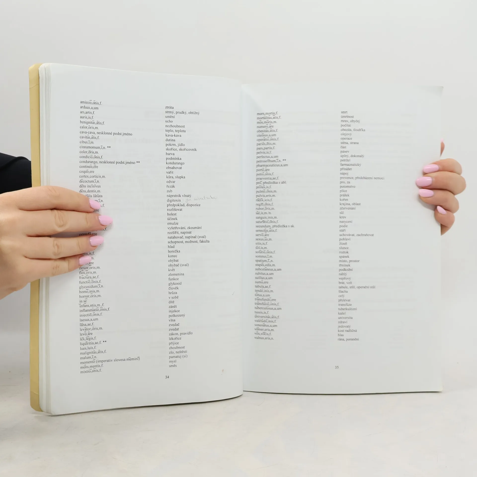 Páté vydání učebnice, která podává základy lékařské terminologie s přihlédnutím ke specifickým potřebám oboru farmacie. Z celkového počtu 20 lekcí, v nichž se probírá elementární latinská gramatika a základy lékařské a farmaceutické terminologie, jsou 3 lekce opakovací. V závěru učebnice jsou zařazeny přehledy týkající se odborné terminologie a čtyři slovníky: řecko-český, česko-řecko-latinský, latinsko-český a česko-latinský.
