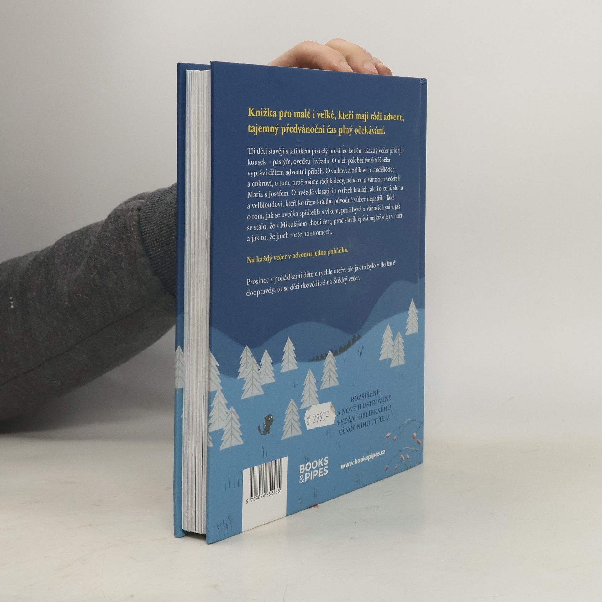 Knížka pro malé i velké, kteří mají rádi advent, tajemný předvánoční čas plný očekávání. Tři děti stavějí s tatínkem po celý prosinec betlém. Každý večer přidají kousek - pastýře, ovečku, hvězdu. O nich pak betlémská Kočka vypráví dětem adventní příběh. O volkovi a oslíkovi, o andělíčcích a cukroví, o tom, proč máme rádi koledy, o hvězdě vlasatici a o třech králích, jak se stalo, že s Mikulášem chodí čert, proč slavík zpívá nejkrásněji v noci a jak to, že jmelí roste na stromech. Na každý večer v adventu jedna pohádka.