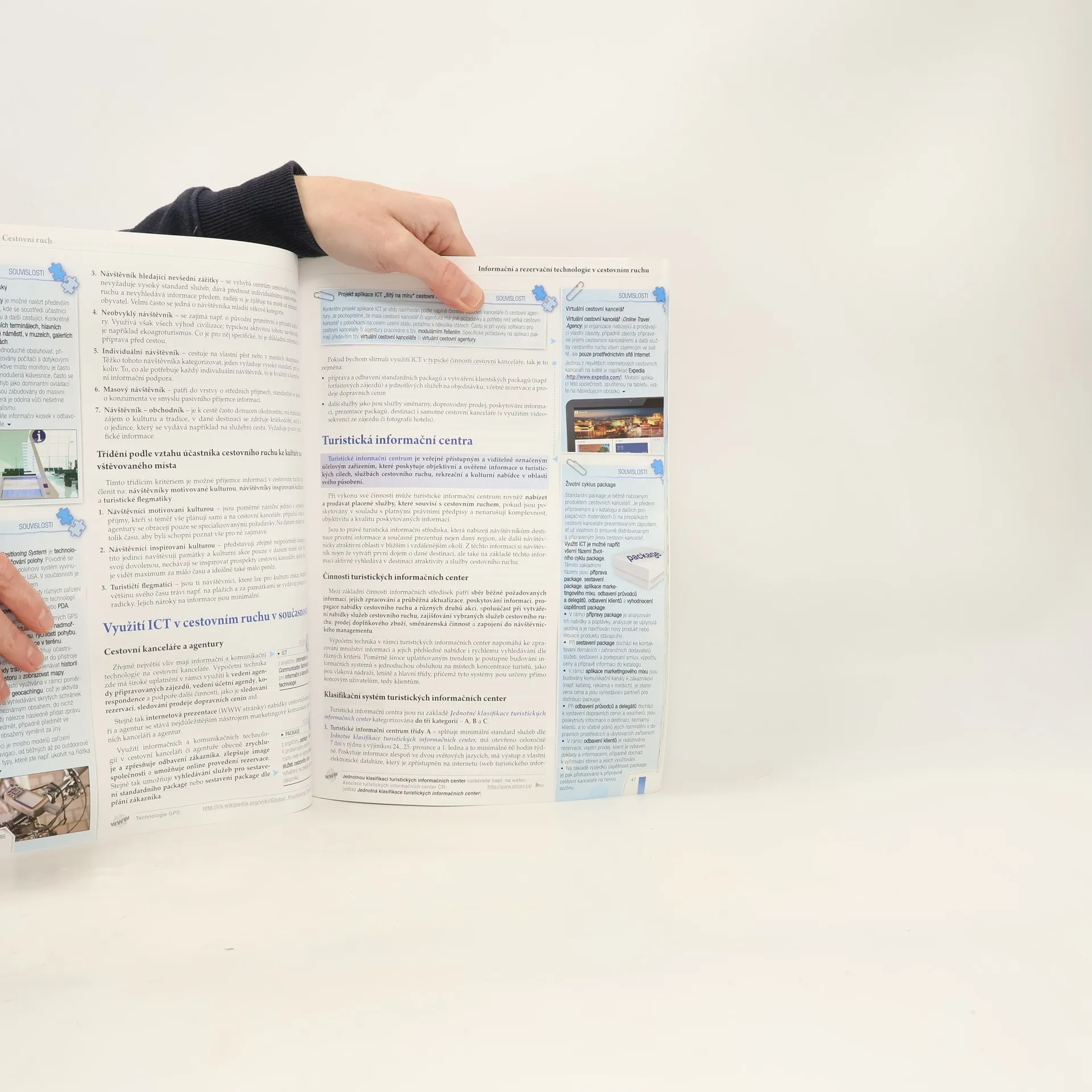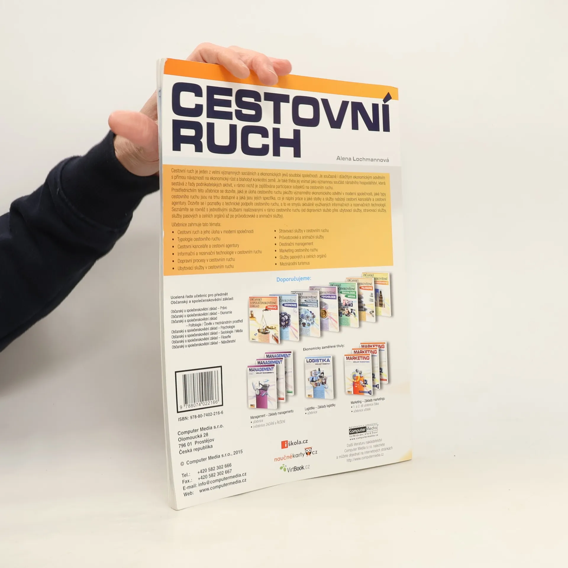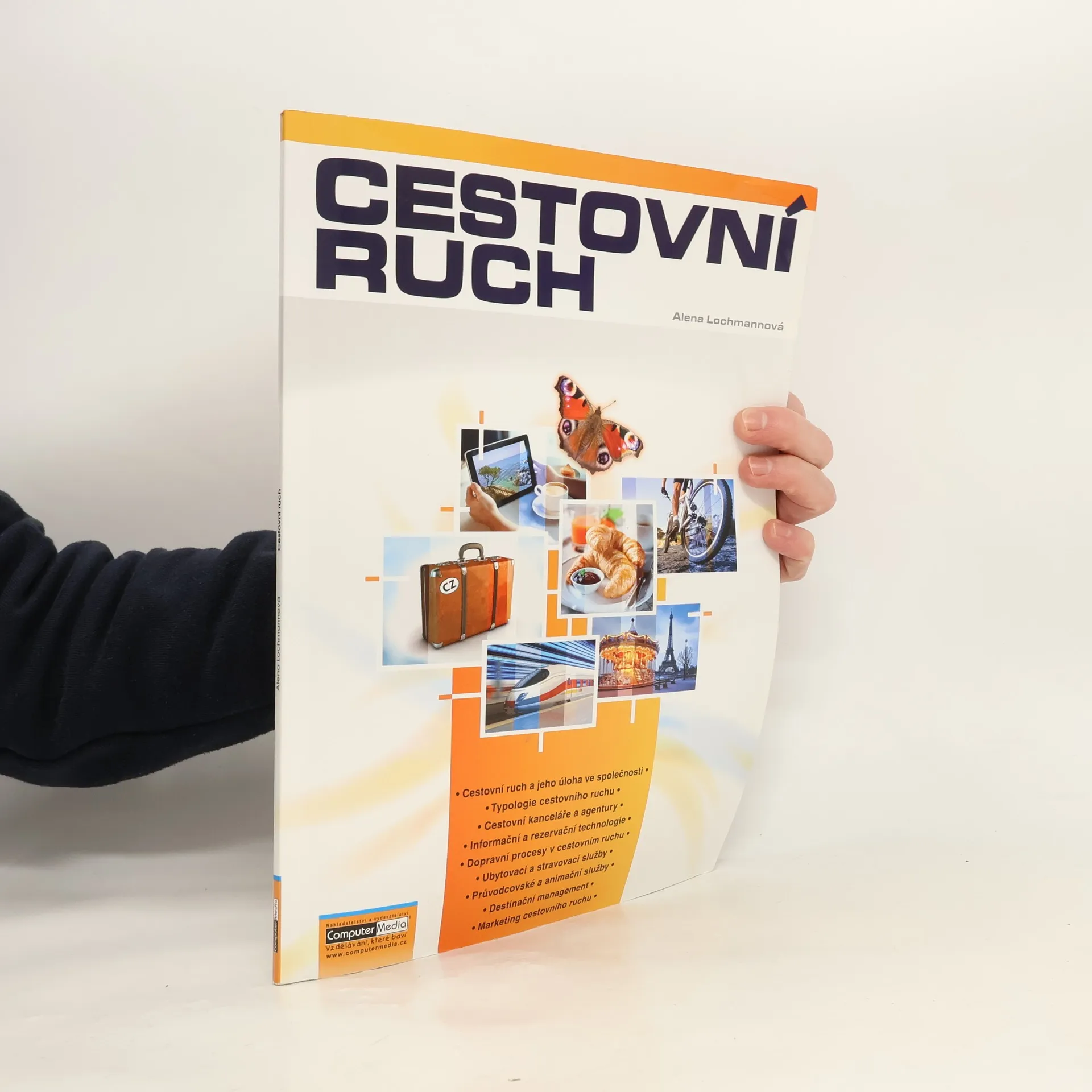 Výuka pokrývá klíčová témata v oblasti cestovního ruchu, včetně jeho role v moderní společnosti, historického vývoje a ekonomických aspektů. Dále se zaměřuje na typologii cestovního ruchu a na funkce cestovních kanceláří a agentur, včetně distribuce produktů a základních pojmů. Důležitou součástí jsou informační a rezervační technologie, které zahrnují využití ICT v různých oblastech cestovního ruchu, jako jsou turistická informační centra a rezervační systémy. Další témata se věnují dopravním procesům, ubytovacím a stravovacím službám, včetně jejich historie, kategorizace a standardů. Průvodcovské a animační služby jsou také podrobně popsány, včetně vzdělávání průvodců a jejich role v cestovním ruchu. Důraz je kladen na destinační management a marketing, který zahrnuje marketingový mix a segmentaci trhu. Publikace se zabývá také službami pasových a celních orgánů a mezinárodním turismem, jehož význam je zdůrazněn v kontextu světové ekonomiky. Text je doplněn infografikou, schématy a historickými poznatky, a nabízí výukové cíle a dovednosti pro studenty. Na závěr každého tématu jsou shrnutí pojmů a náměty pro samostatnou činnost a opakování. Kniha se vyznačuje špičkovou kvalitou tisku a grafického zpracování.