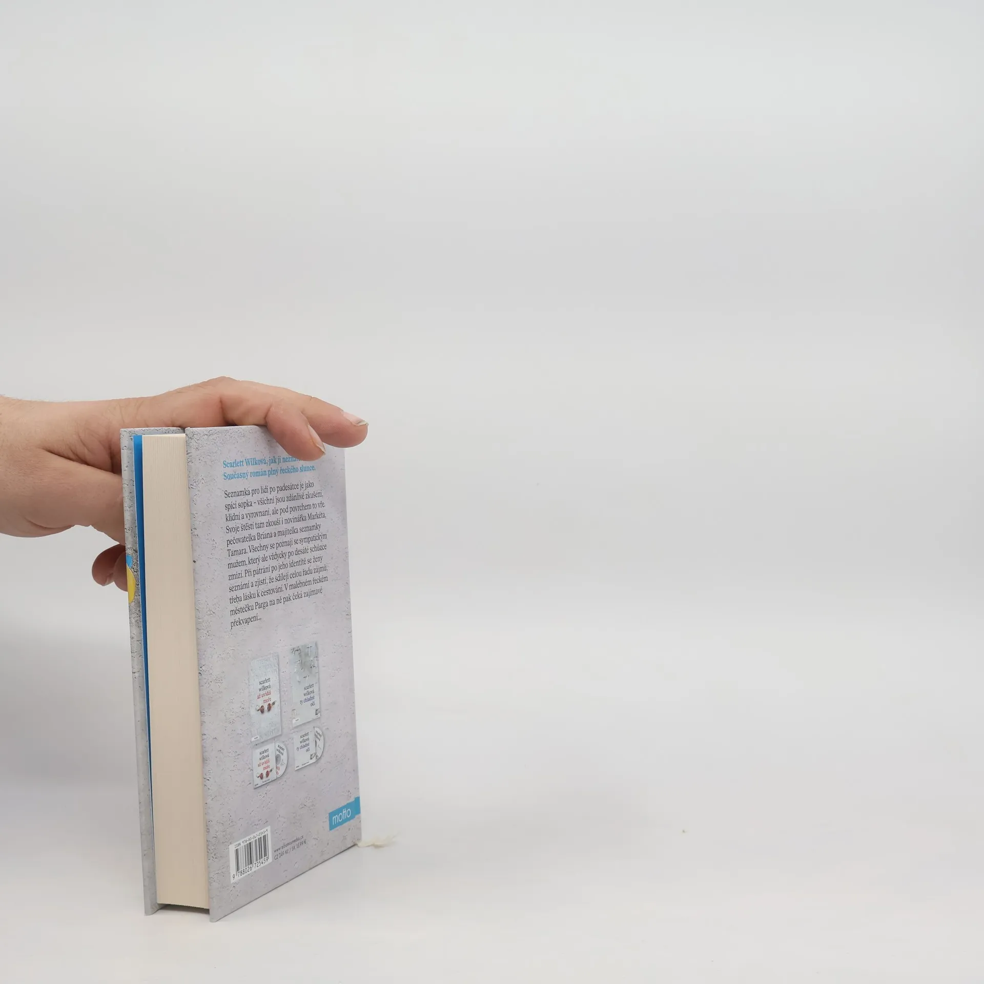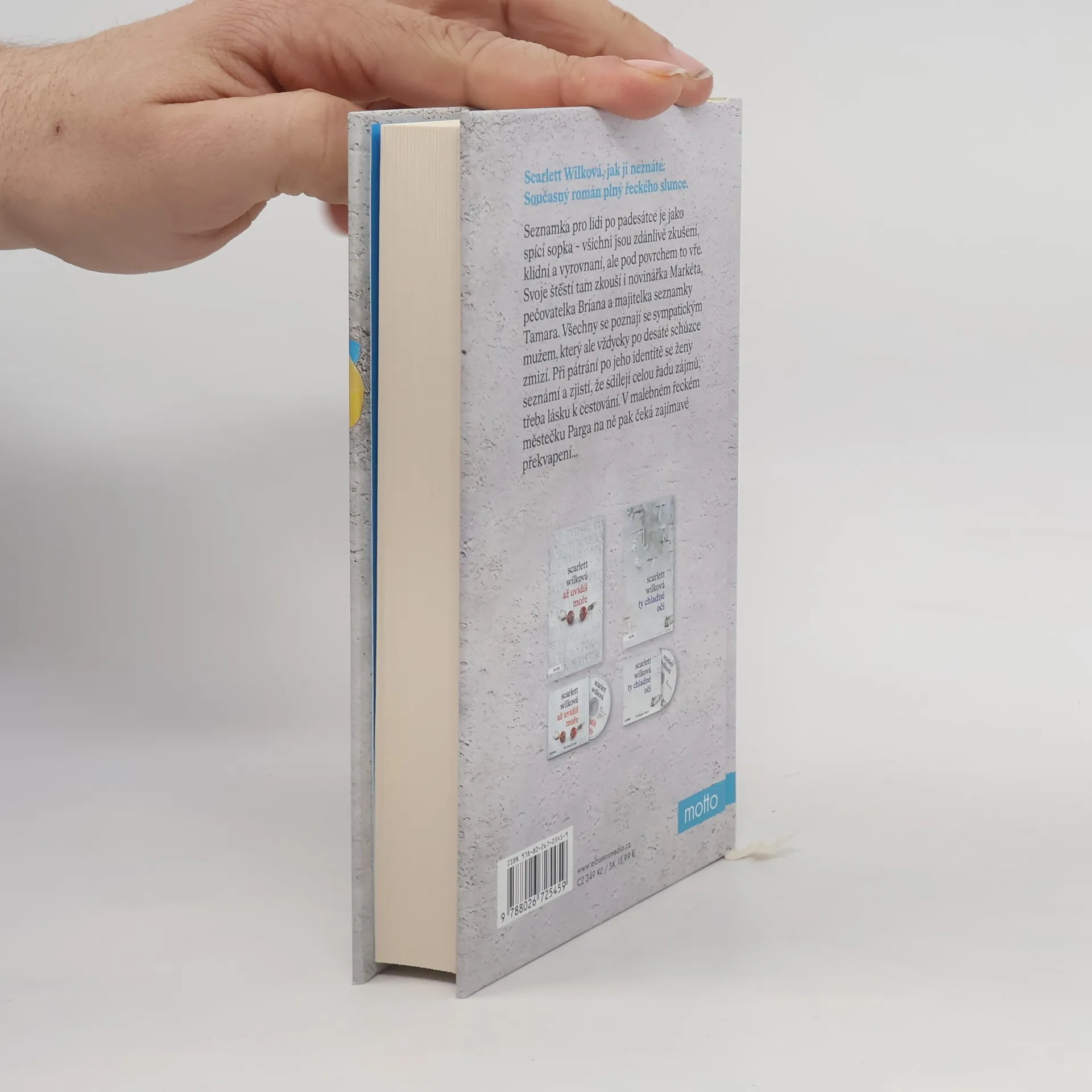 Scarlett Wilková, jak ji neznáte. Současný román plný řeckého slunce. Seznamka po padesátce je jako spící sopka – všichni jsou zdánlivě zkušení, klidní a vyrovnaní, ale pod povrchem to vře. Svoje štěstí tam zkouší i novinářka Markéta, pečovatelka Briana a majitelka seznamky Tamara. Všechny se poznají se sympatickým mužem, který ale vždycky po desáté schůzce zmizí. Při pátrání po jeho identitě se ženy seznámí a zjistí, že sdílejí celou řadu zájmů, třeba lásku k cestování. V malebném řeckém městečku Parga na ně pak čeká zajímavé překvapení...