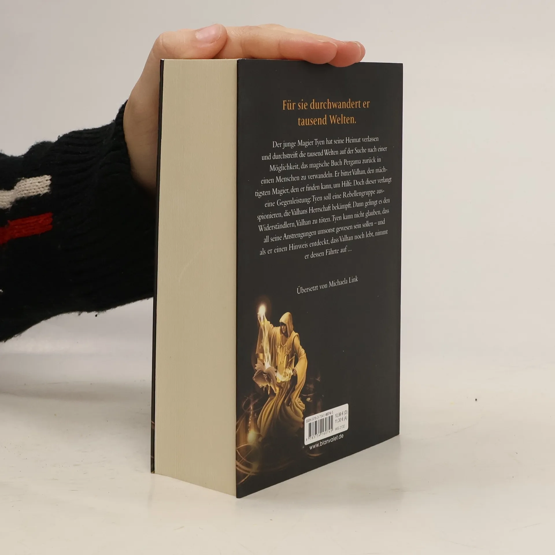 Um sie zu retten, verrät er seine Gefährten Der junge Magier Tyen hat seine Heimat verlassen und durchstreift die tausend Welten auf der Suche nach einer Möglichkeit, das magische Buch Pergama zurück in einen Menschen zu verwandeln. Er bittet Valhan, den mächtigsten Magier, den er finden kann, um Hilfe. Doch dieser verlangt eine Gegenleistung: Tyen soll eine Rebellengruppe ausspionieren, die Valhans Herrschaft bekämpft. Dann gelingt es den Widerständlern, Valhan zu töten. Tyen kann nicht glauben, dass all seine Anstrengungen umsonst gewesen sein sollen – und als er einen Hinweis entdeckt, dass Valhan noch lebt, nimmt er dessen Fährte auf …