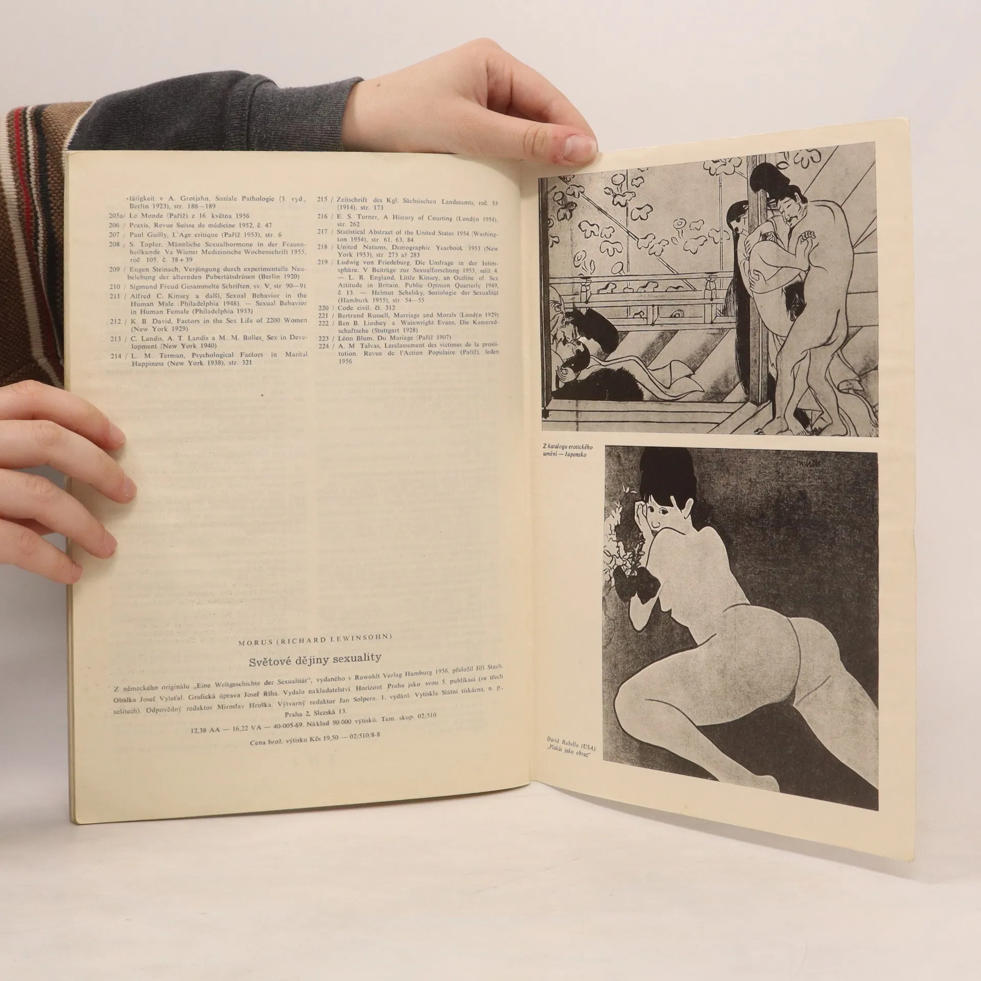 V dějinách jsme četli a slyšeli o ledačem, ale velmi málo o tom, jak soukromý sexuální život vedoucích lidí i celých národů utvářel dějiny. A přece je to faktor nadmíru důležitý, i když pro něj nemáme takové podklady jako pro různé jiné, o nichž nebylo tak choulostivé mluvit a zvláště psát v určité době a určitém prostředí. Je tedy těžší proniknout do poznání tohoto pozadí života, a pochopit je vyžaduje zvláštní nadání a znalosti. V tom je nutno obdivovat autora knihy, která se v trojsešitovém vydání dostává do rukou českému čtenáři. Na prvý ráz je zřejmé, že autor má nejen široké vzdělání a veliké znalosti medicínské, ale že je seznámen i s posledními poznatky o podstatě sexuální funkce u člověka a jejím ovládání. Je doktorem medicíny a státních věd, studoval sociální hygienu a národní hospodářství a hlavně zná svět a jeho dějiny. Dovede nejsložitější věci podat velmi živě, názorně a decentně; upoutá svým líčením, vzbudí zájem a uspokojí náročného čtenáře. Ale kdo očekává hlavně příjemné vzrušení z pikantních historek, bude asi poněkud zklamán a dočte knihu s jiným naladěním, nežli očekával.