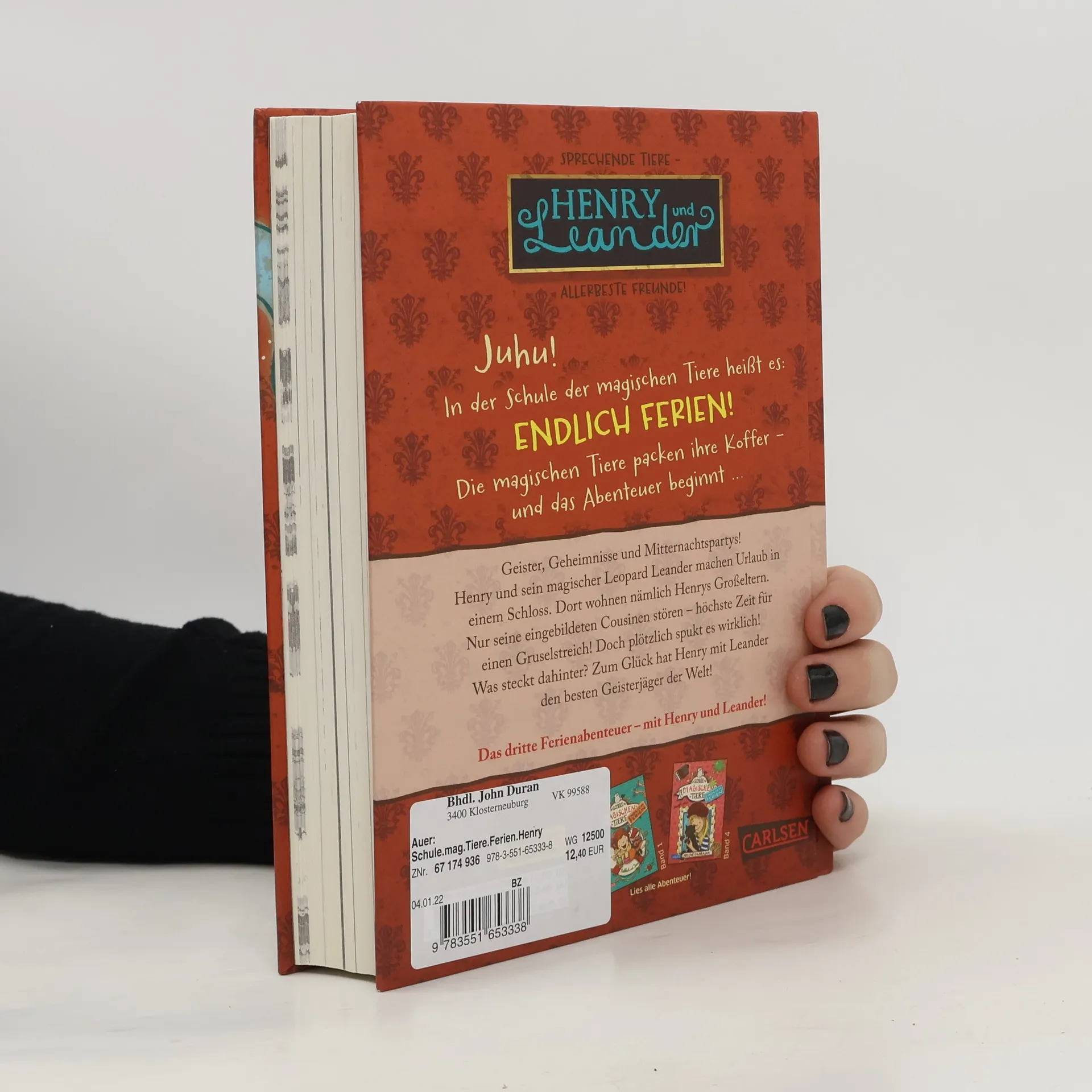 Jetzt kostenlos herunterladen – die App zur Serie! *** Auf in die Ferien – mit einem magischen, sprechenden Tier! *** BAND 3: Geister, Geheimnisse und Mitternachtspartys! Henry und sein magischer Leopard Leander machen Urlaub in einem echten Gespensterschloss. Dort wohnen nämlich Henrys Großeltern. Dumm nur, dass seine eingebildeten Cousinen auch da sind. Höchste Zeit für einen Gruselstreich! Doch plötzlich spukt es wirklich im Schloss. Zum Glück hat Henry mit seinem Leoparden Leander den besten Geisterjäger der Welt ... *** DIE SCHULE DER MAGISCHEN TIERE - Endlich Ferien: In der Schule der magischen Tiere heißt es: Endlich Ferien! Die magischen Tiere packen ihre Koffer – und das Abenteuer beginnt … Ein spannender Ferienkrimi in kurzen Kapiteln – mit echtem magischem Tier. *** Viel Spaß mit dem dritten Ferienabenteuer der Bestseller-Reihe! ***