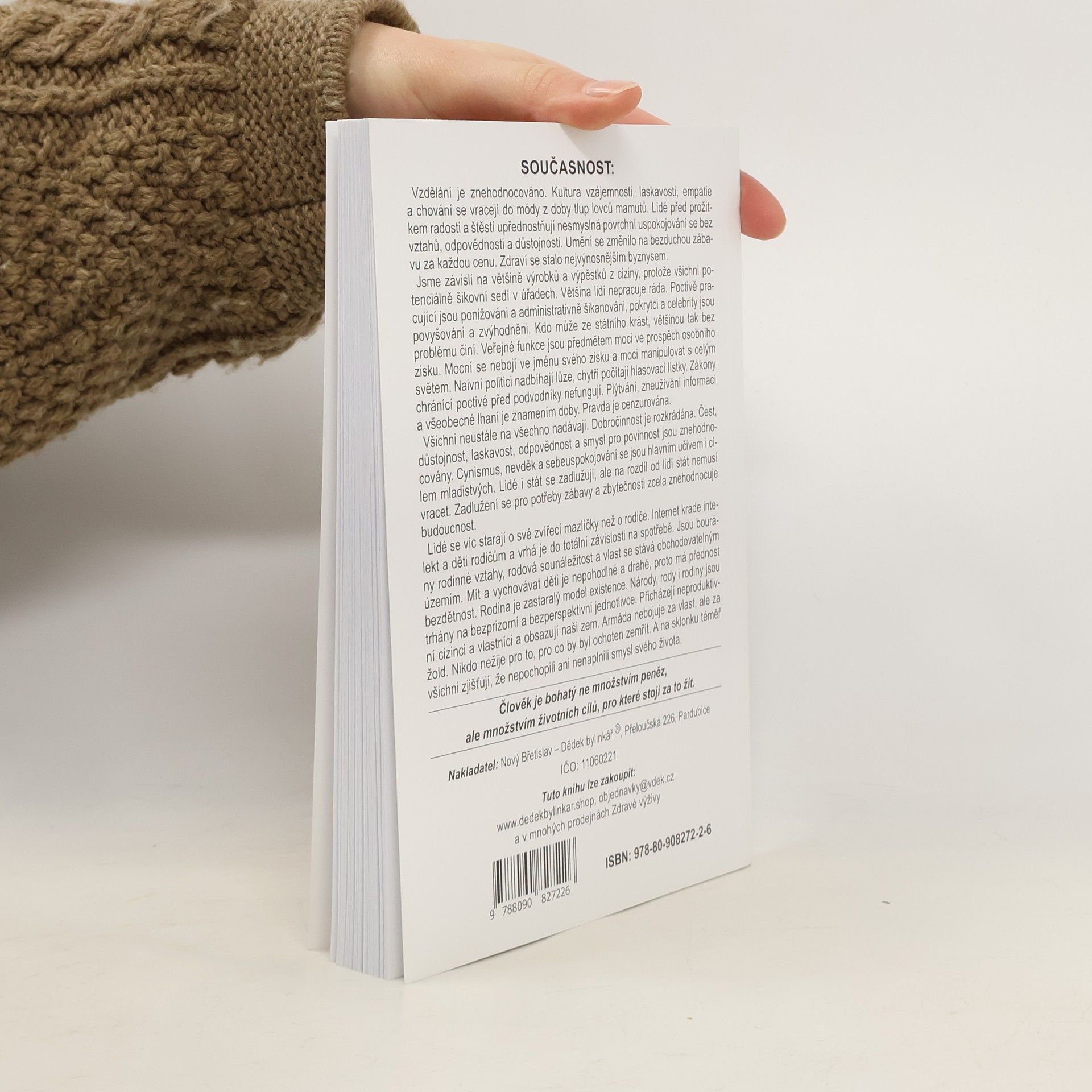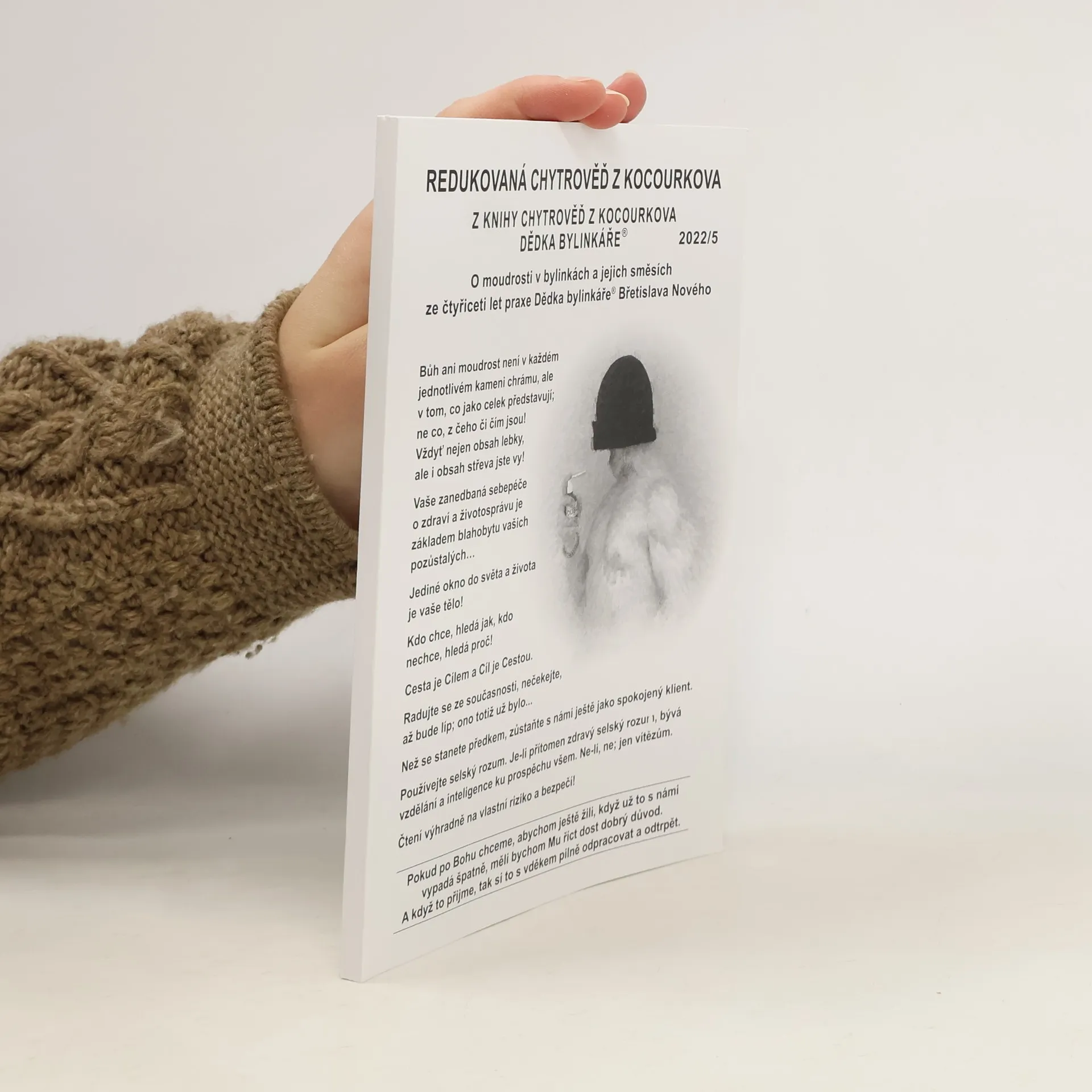Výběr z předchozí knihy Chytrověď z Kocourkova Dědka bylinkáře plný doporučení bylinné a další alternativní léčby, propagace vlastních výrobků a kouzelného humoru.