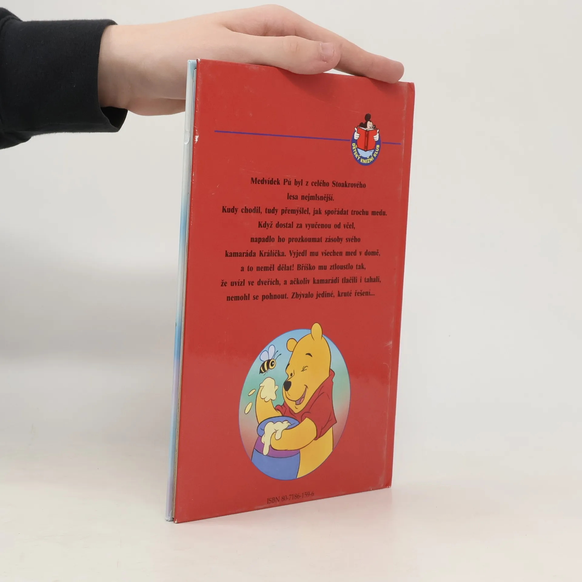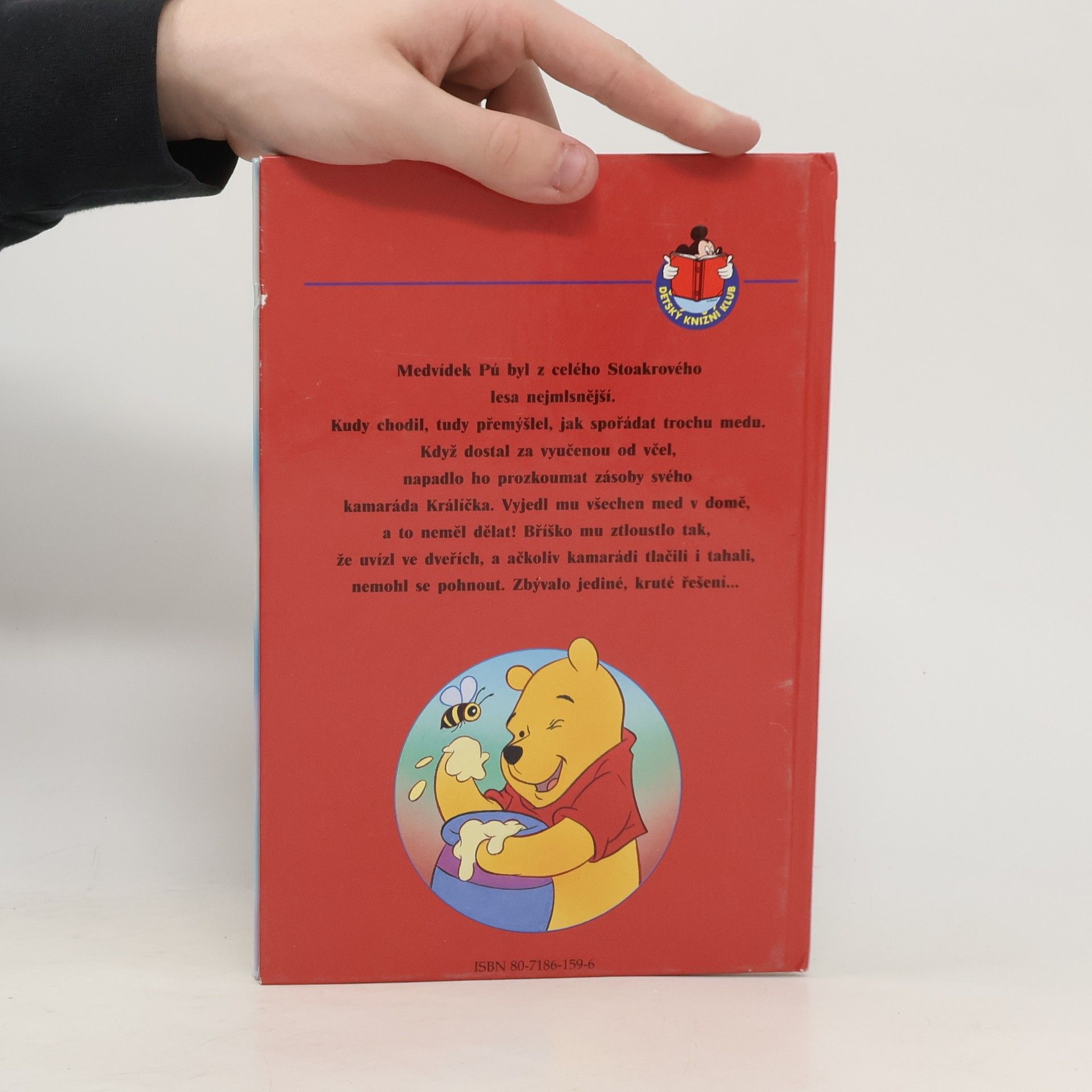 Medvídek Pú byl z celého stoakrového lesa nejmlsnější. Kudy chodil, tudy přemýšlel, jak spořádat trochu medu. Když dostal za vyučenou od včel, napadlo ho prozkoumat zásoby svého kamaráda Králíčka. Vyjedl mu všechen med v domě, a to neměl dělat! Bříško mu ztloustlo tak, že uvízl ve dveřích, a ačkoliv kamarádi tlačili i tahali, nemohl se pohnout. Zbývalo jediné, kruté řešení...