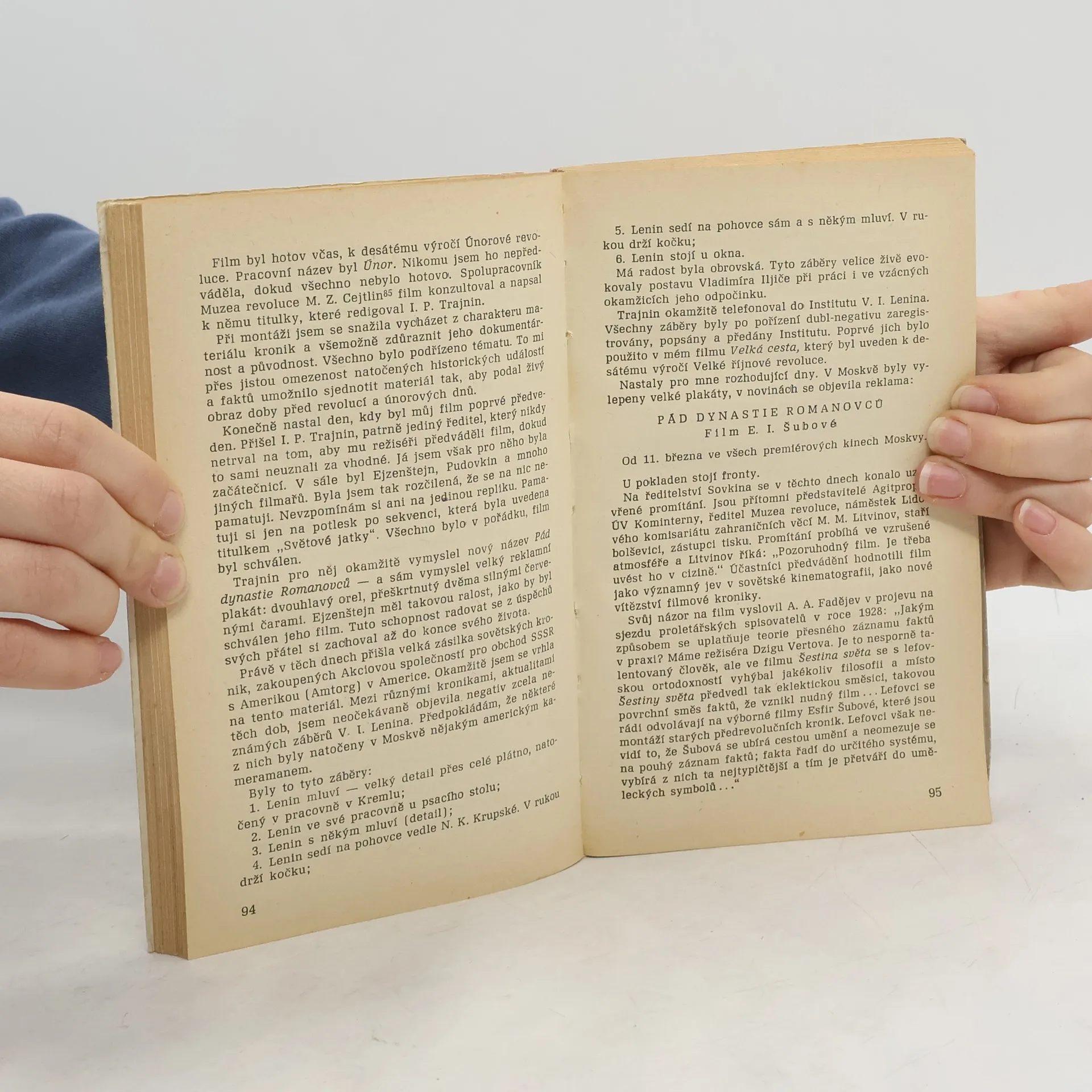 Kniha vzpomínek vynikající sovětské filmové dokumentaristky. V poutavém proudu vyprávění ožívá doba, v níž se rodila četná velká díla sovětského filmového umění, vystupuje do popředí autorčina vlastní práce a zásady, jež jí dávaly tvar i poslání, a řada osobností (Majakovskij,Vertov, Višněvskij, Ejzenštejn aj.), kterých si vážila a s nimiž ji pojilo přátelství.