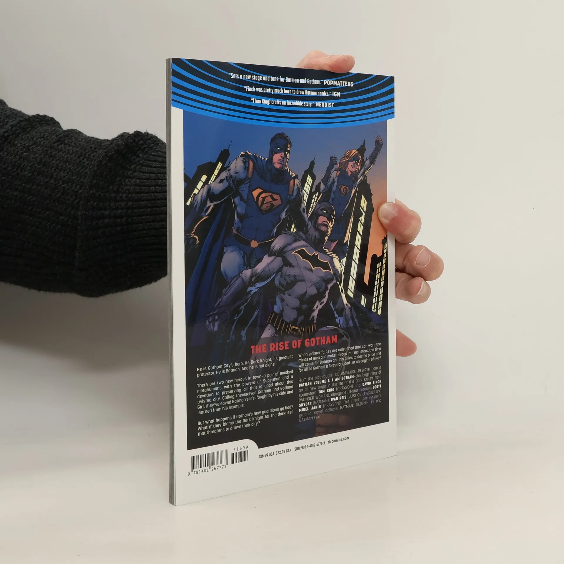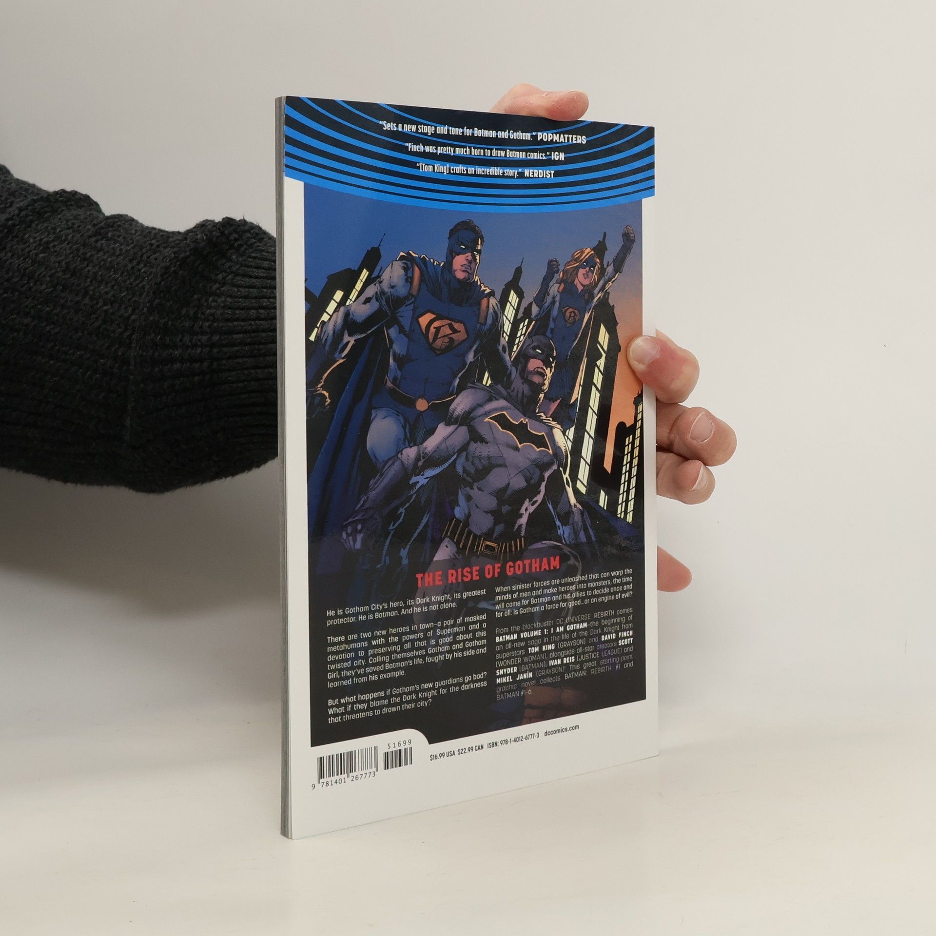 Batman is Gotham City's greatest protector. But now he's not alone. There are two new heroes in town—a pair of masked metahumans with the powers of Superman and a devotion to preserving all that is good about this twisted city. Calling themselves Gotham and Gotham Girl, they’ve saved Batman’s life, fought by his side and learned from his example. But what happens if Gotham’s new guardians go bad? What if they blame the Dark Knight for the darkness that threatens to drown their city? When sinister forces are unleashed that can warp the minds of men and make heroes into monsters, the time will come for Batman and his allies to decide once and for all: Is Gotham a force for good…or an engine of evil? From the blockbuster DC Universe Rebirth event comes Batman Vol. 1: I Am Gotham—the beginning of an all-new saga in the life of the Dark Knight from superstars Tom King (Grayson) and David Finch (Wonder Woman), featuring an all-star cast of creators such as Scott Snyder (Batman: The Court Of Owls), Ivan Reis (Justice League) and Mikel Janín (Justice League Dark)! This great starting-point graphic novel collects Batman: Rebirth #1 and Batman #1-6.