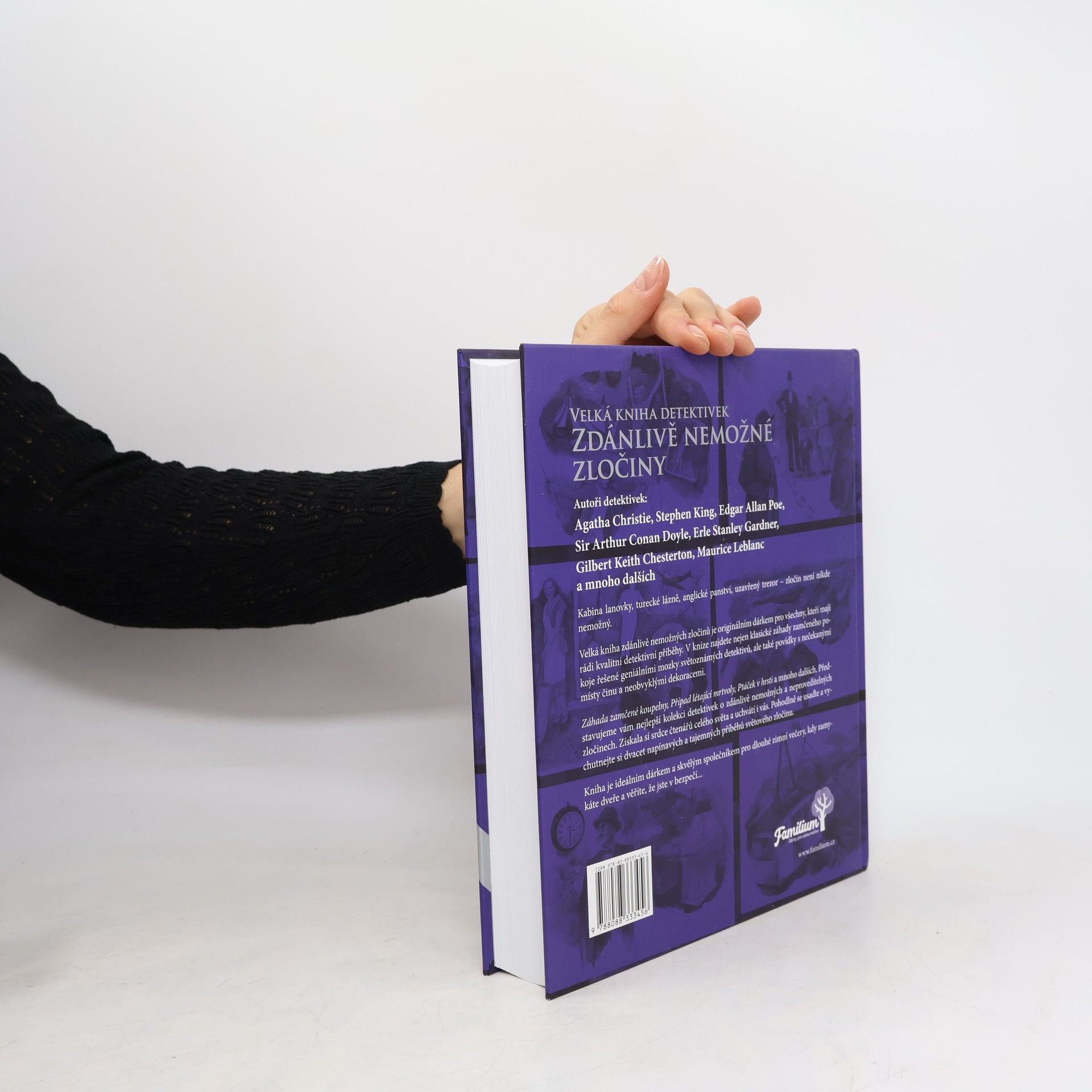 Záhady zamčeného pokoje a další nevysvětlitelné příběhy. Agatha Christie, Stephen King, Edgar Allan Poe, Erle Stanley Gardner, Sir Arthur Conan Doyle a mnoho dalších. Ať už jde o kabinu lanovky, turecké lázně, anglické panství nebo uzavřené trezory - zločin není nikde nemožný.Velká kniha zdánlivě nemožných zločinů představuje originální dárek pro všechny, kteří si oblíbili prvotřídní detektivní příběhy. V této knize nenajdete pouze tradiční záhady zamčeného pokoje, které vyřeší jen brilantní důvtip světově proslulých detektivů, ale také povídky s nečekanými místy činu a netradičním prostředím.