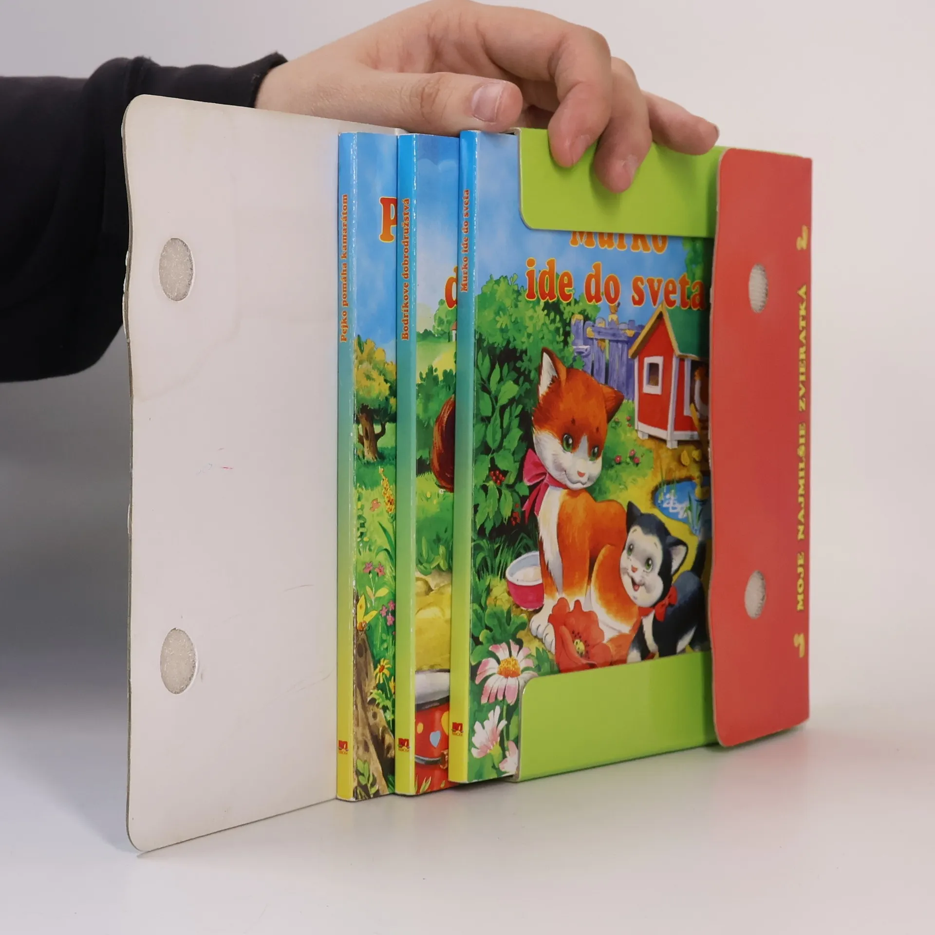 Tri dvanásťstranové leporelá v kufríku - Bodríkove dobrodružstvá + Murko ide do sveta + Pejko pomáha kamarátom Vtipné príbehy s obľúbenými zvieratkami si môžu deti vziať do postieľky, na prechádzku alebo návštevu k babke a dedkovi. Murko, Pejko a Bodrík budú s nimi stále!